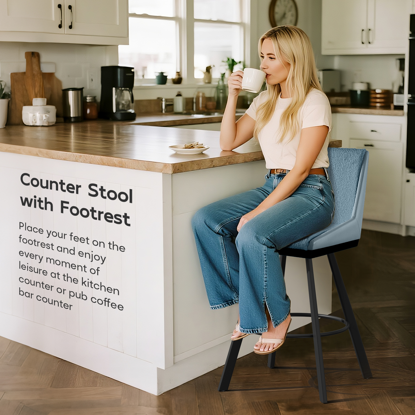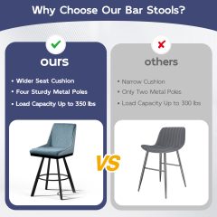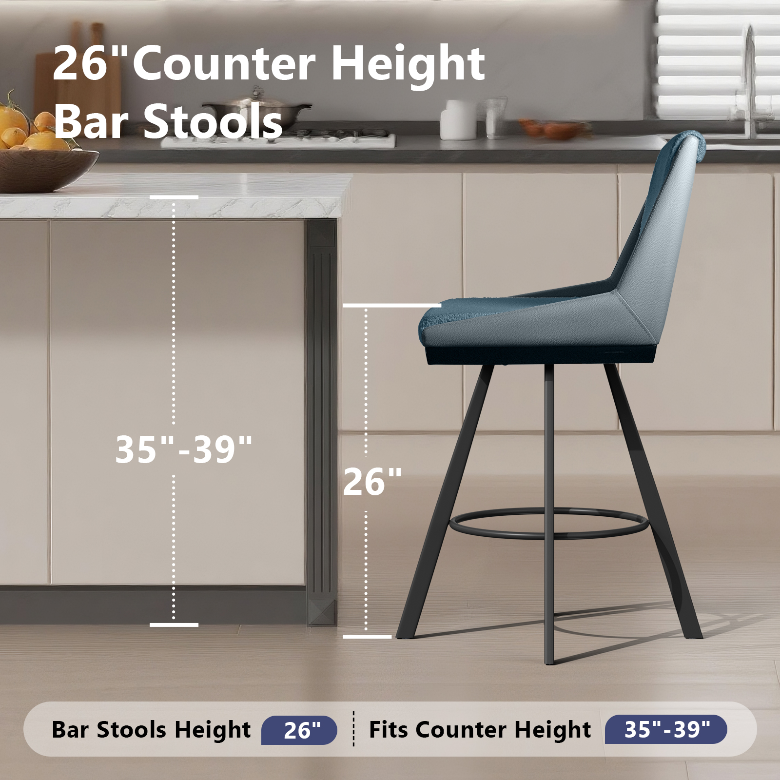 - Features:Counter Height Design: These 26 inch bar stools are specifically made for standard counter height surfaces (35–39″), ideal for any kitchen island or home bar area.Stylish Faux Leather Upholstery: Covered in durable and water-resistant faux leather, these bar chairs feature tufted diamond stitching for a modern barstool aesthetic.