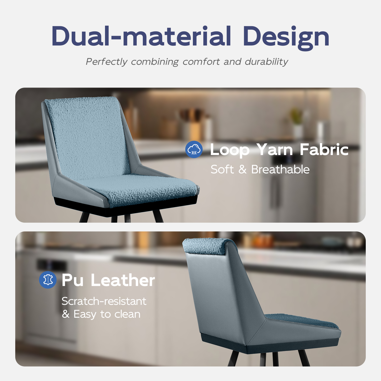 Upgrade your seating with this Ninecer 26 inch Counter Height Bar Stools Set of 2, featuring a classic modern design that fits seamlessly into any kitchen island, dining room, or home bar setting. Upholstered in waterproof PU leather and fabric material, these swivel bar chairs provide both comfort and functionality. The 360-degree swivel seat and solid black metal legs accents combine style and practicality. Designed for everyday use, these bar stools hold up to 350 lbs and include non slip feet to protect your floors.