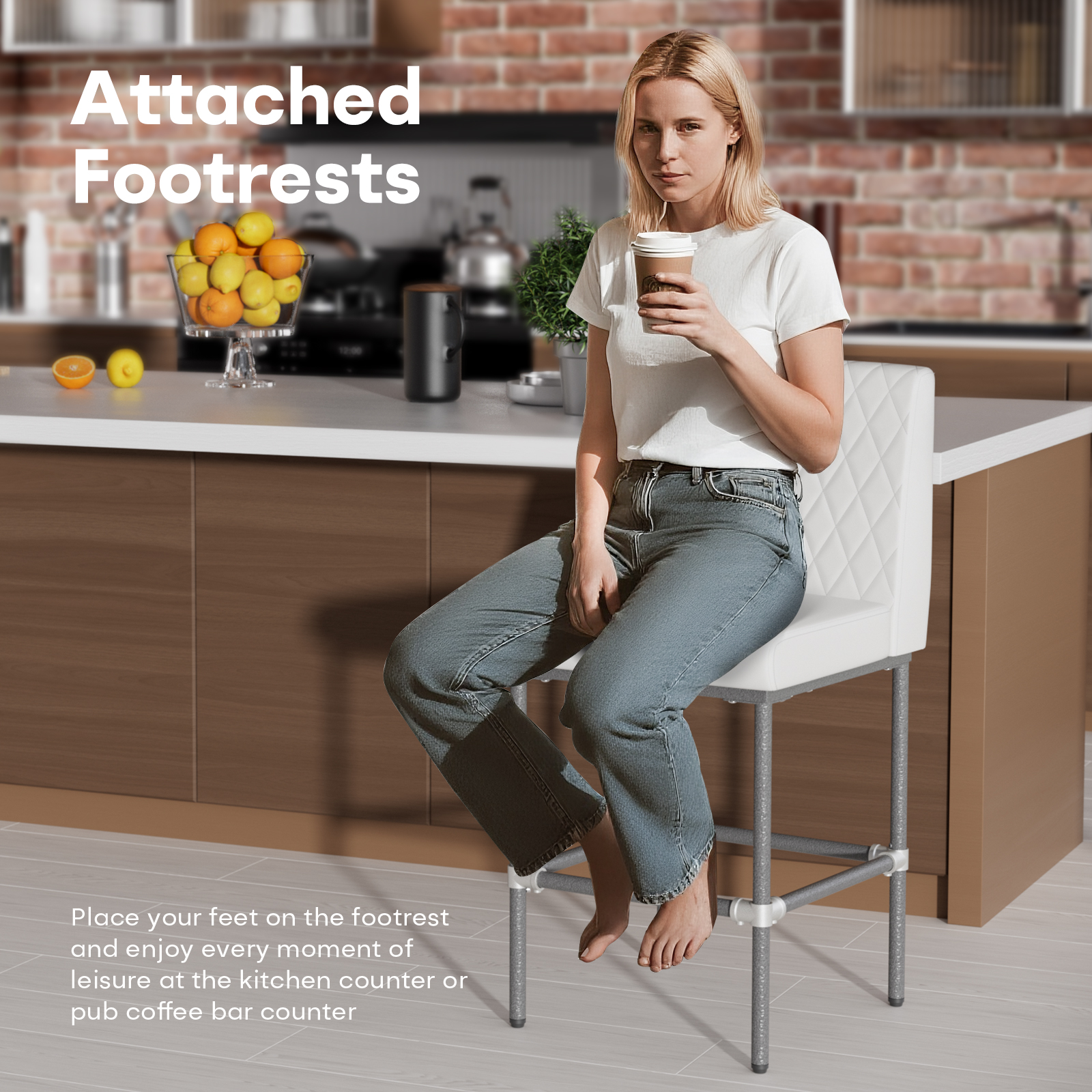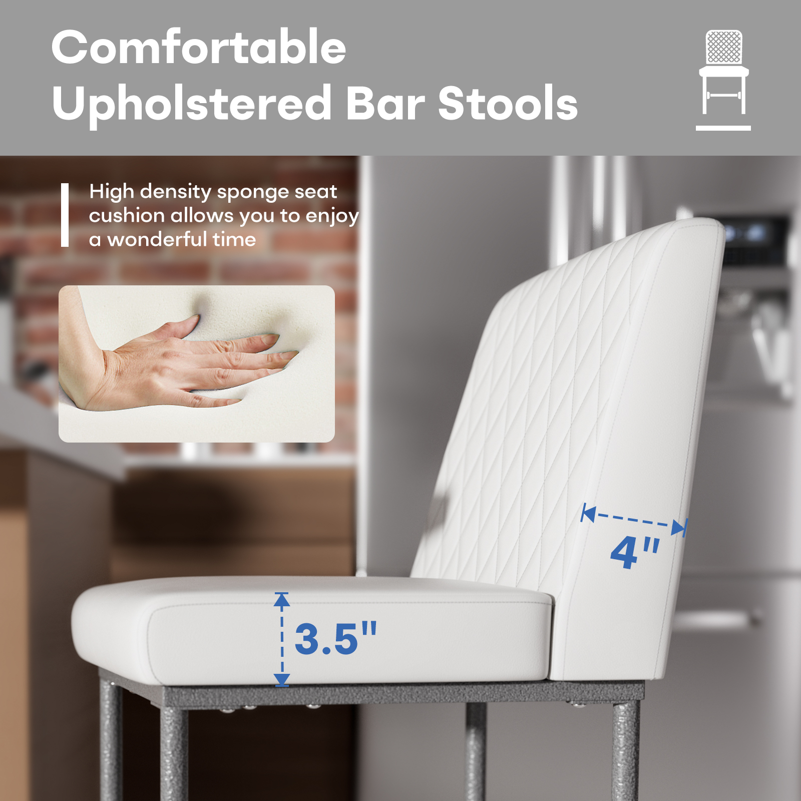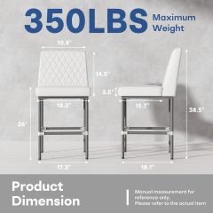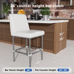 26 Inch Counter Height Bar Stools Set of 2,Industrial Low Back Leather Bar Stools For Home Kitchen Island,Square Seat Bar Chair with Metal Leg 350lbs, White