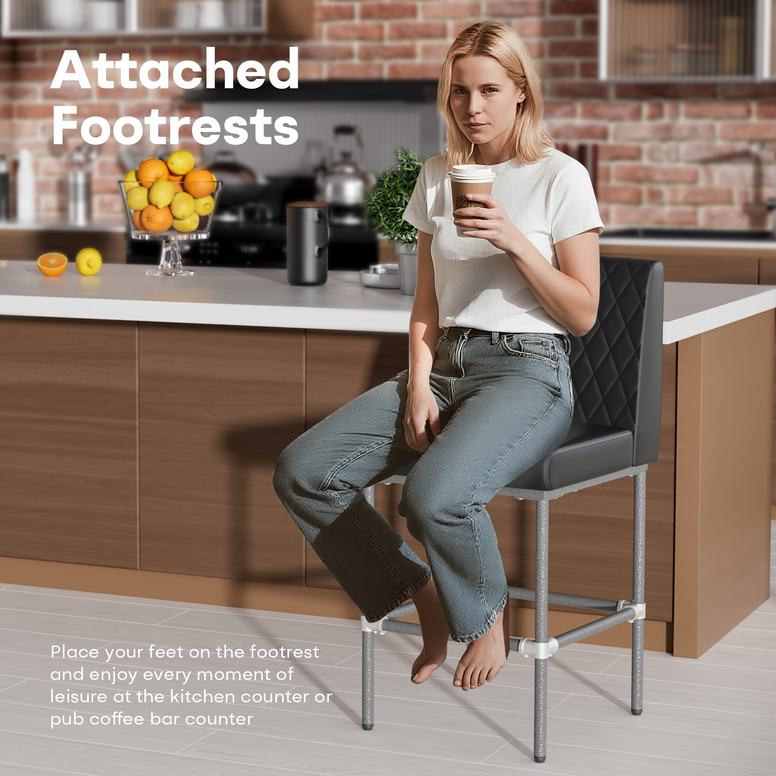 - Quilted Back with Diamond Stitching:These counter height bar chairs include a low backrest with a diamond-stitched pattern, offering both support and a stylish upgrade to your kitchen island or bar counter.