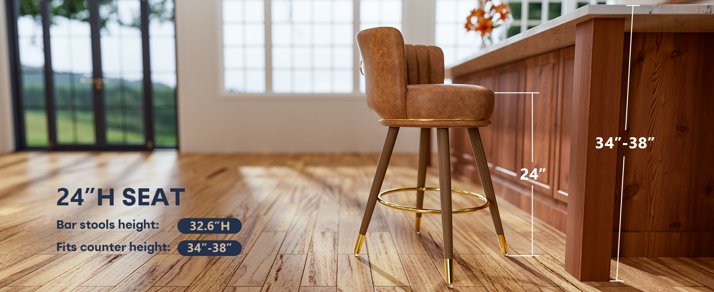 - Ninecer 24” Classic Bar Stools, Modern Swivel Counter Stools, PU Leather Counter Chairs, Green (Set of 2)