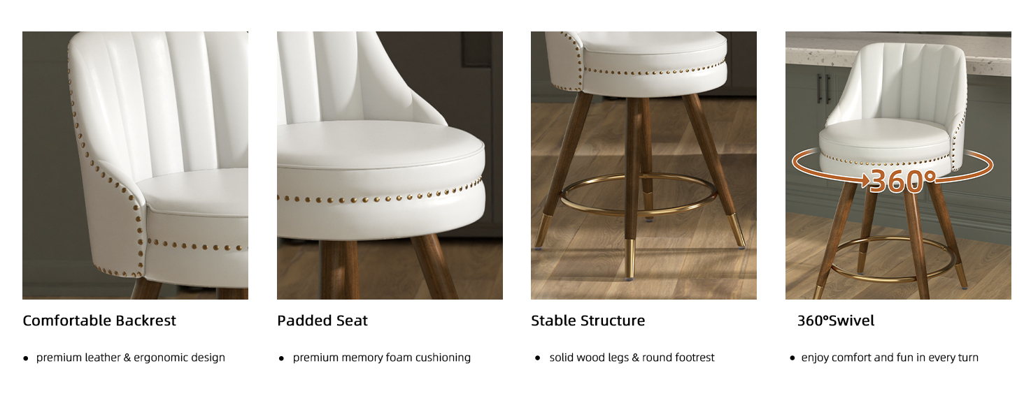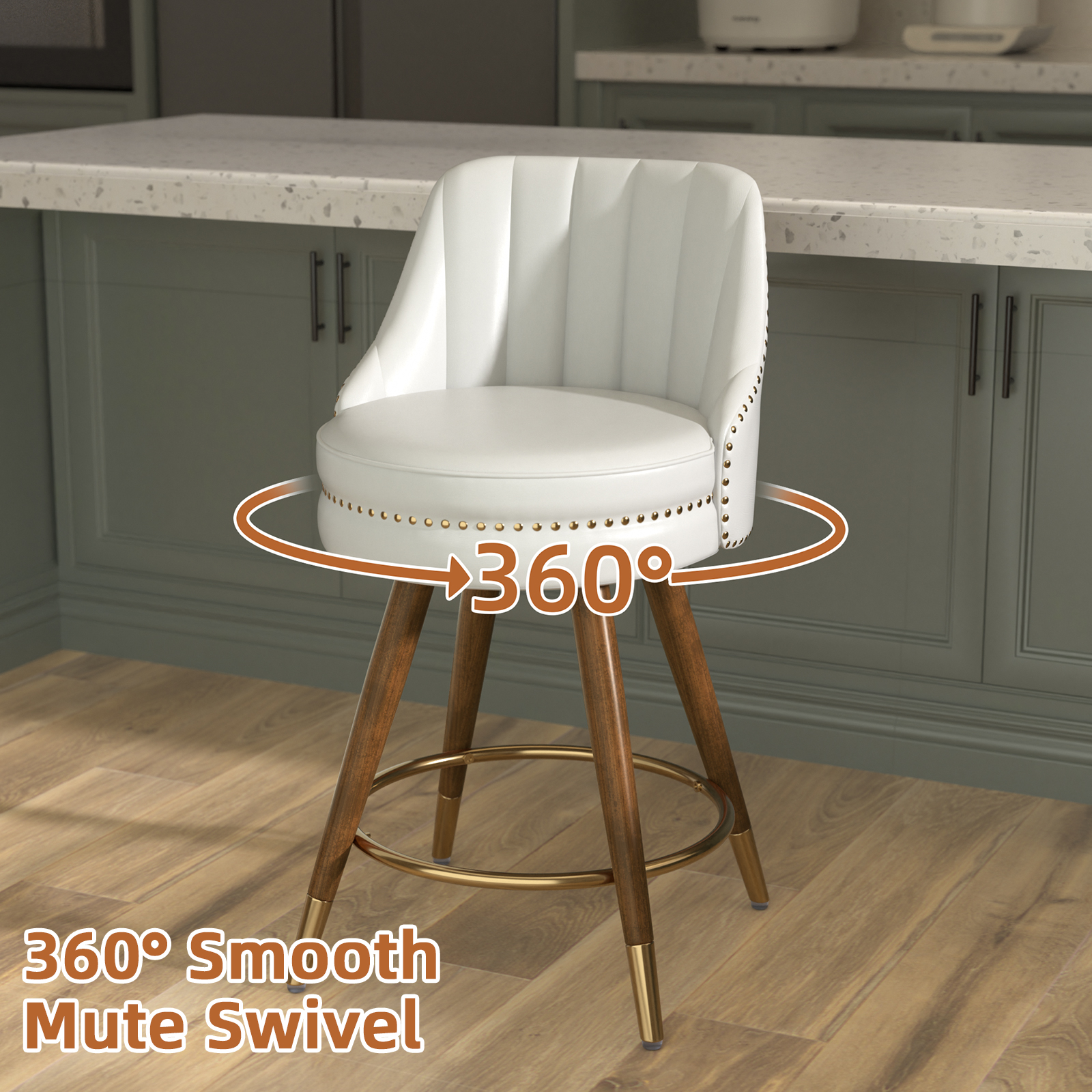- Ninecer 24” Swivel Counter Height Chairs, Modern PU Leather Bar Stools with Thick Cushion and Footrest, White (Set of 4)