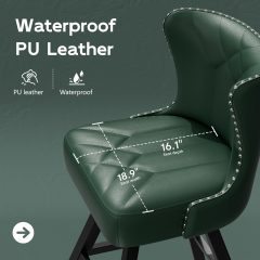 Ninecer 25″ Counter Height Bar Stools Set of 2, 360° Swivel Bar Chair with Low-Back Round Seat, Upholstered Faux Leather Kitchen Chairs with Footrest, Counter Stools for Kitchen Island , Green