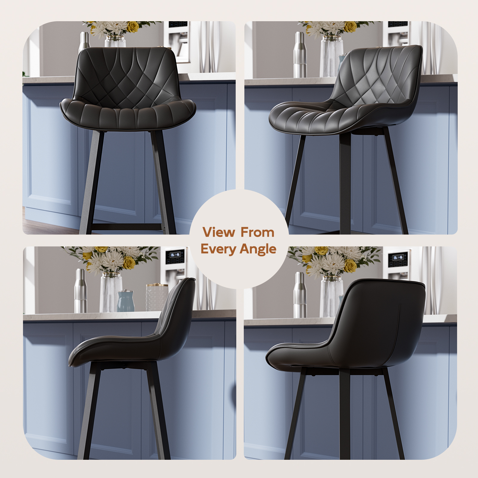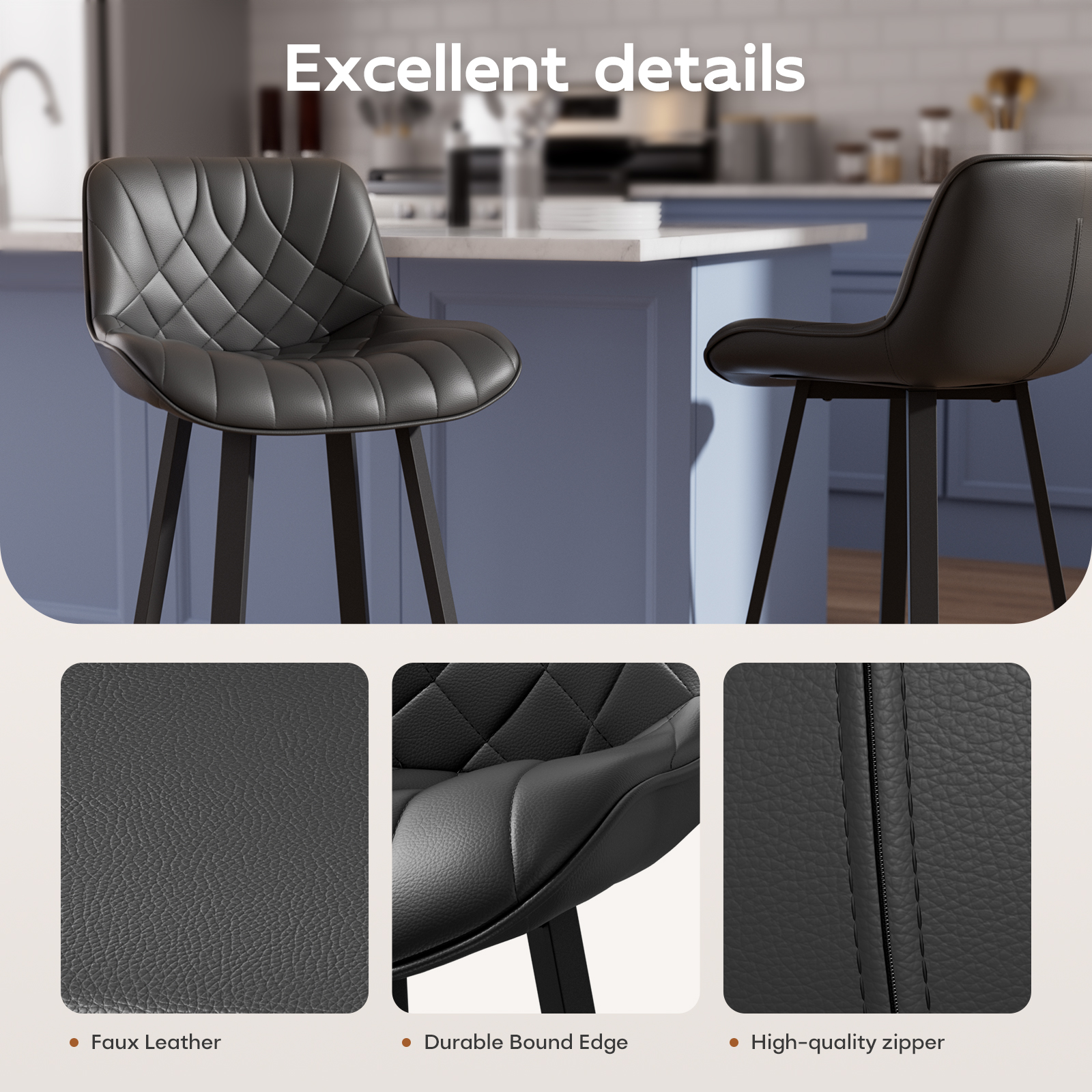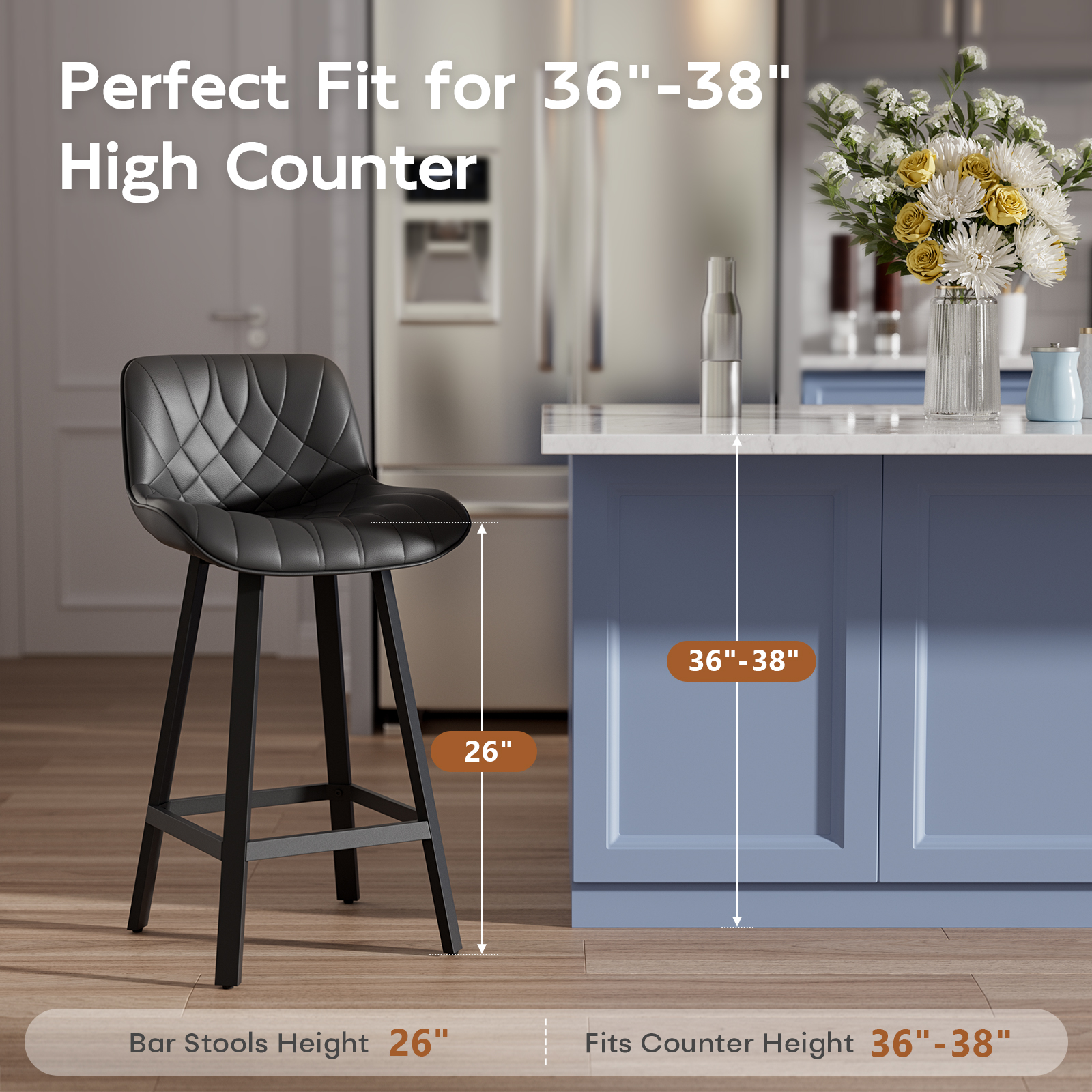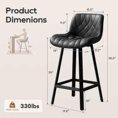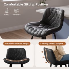 Ninecer 26" Counter Height Bar Stools, PU Leather Upholstered Bar Chairs with Low Back & Metal Legs, Modern Kitchen Island Counter Chairs for Dining Room, Set of 2, 400LBS, Black
