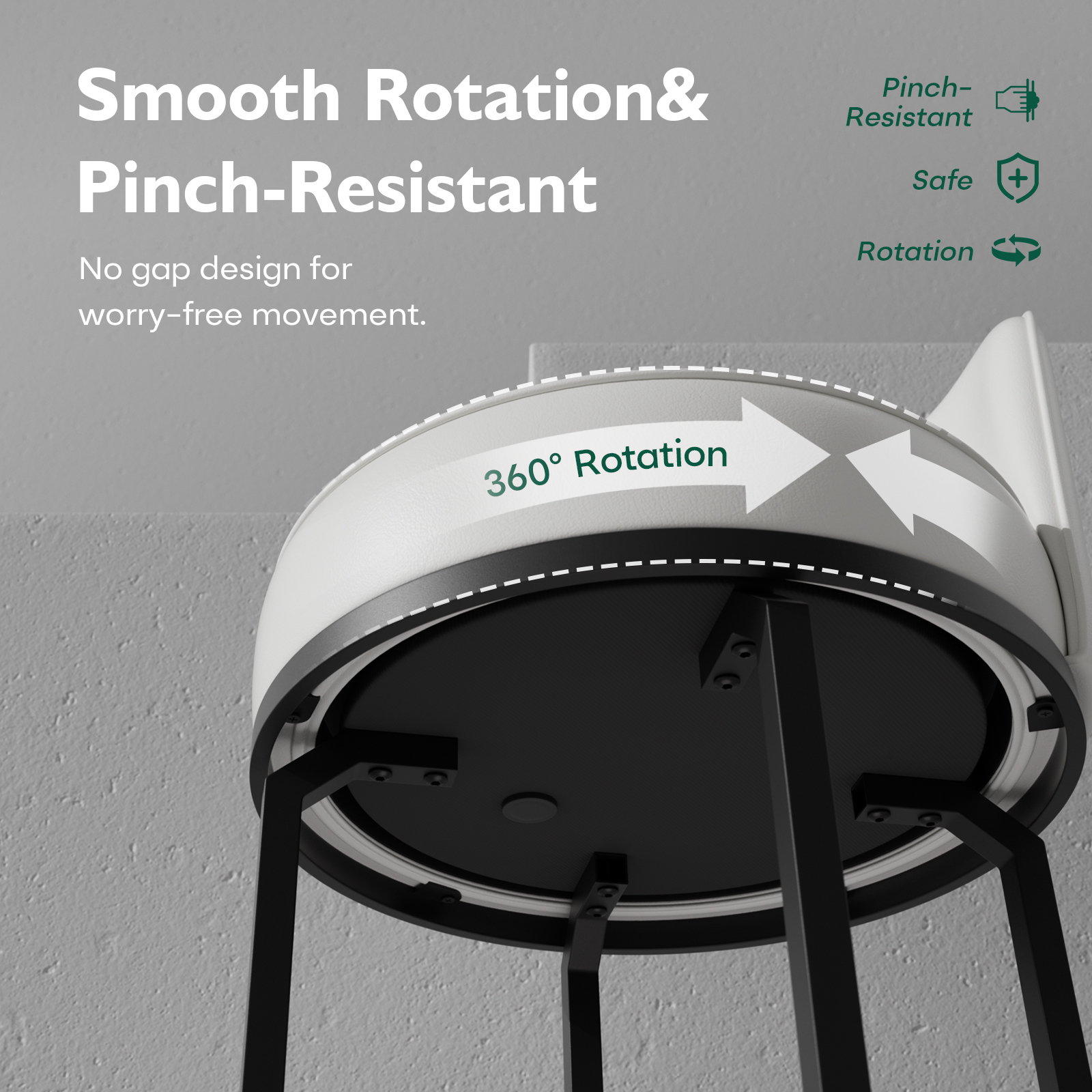 - 360° Swivel Counter Stools: Smooth rotation allows easy movement and conversation without standing up
