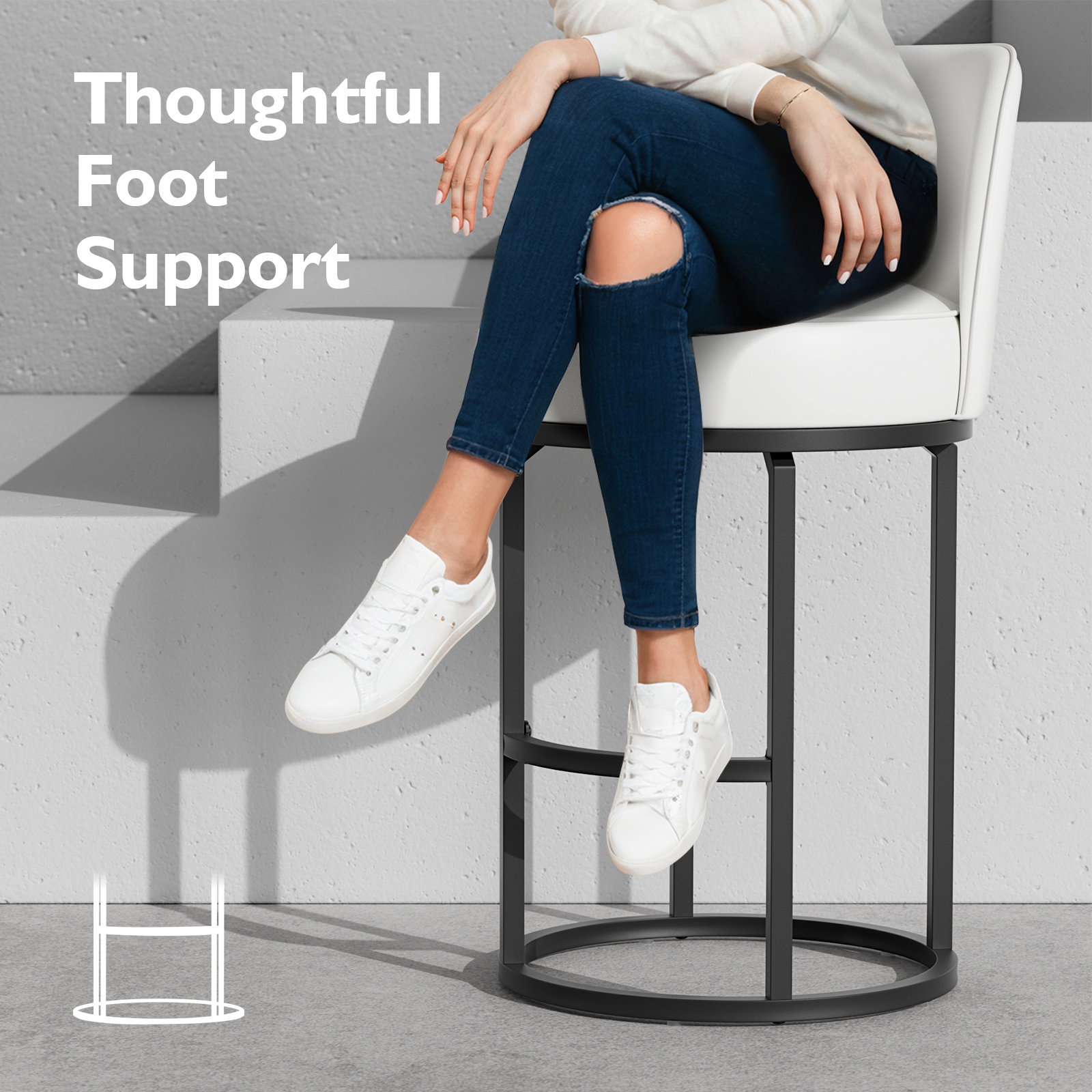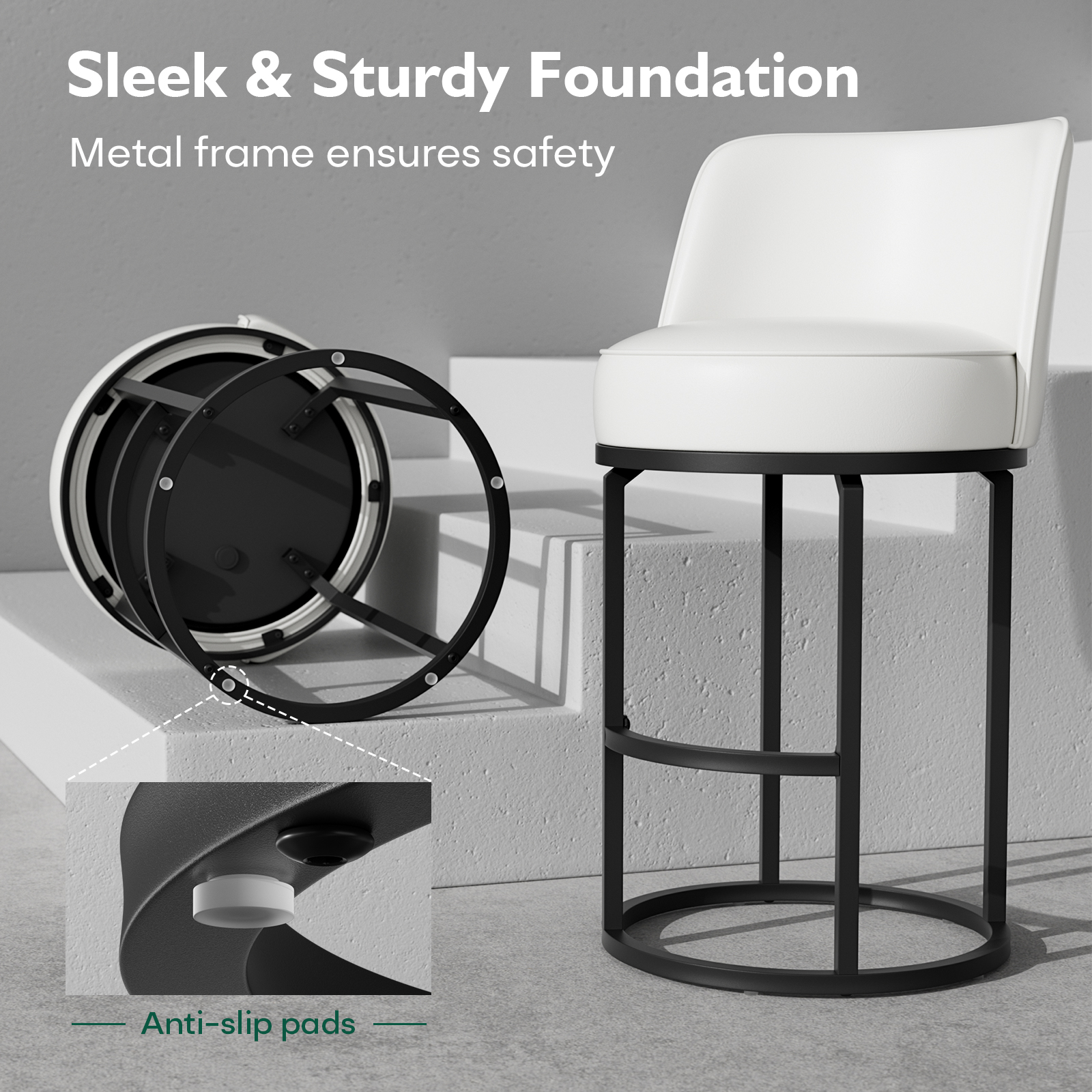 - Sturdy Metal Base:Stable metal frame with integrated footrest supports up to 300 lbs
