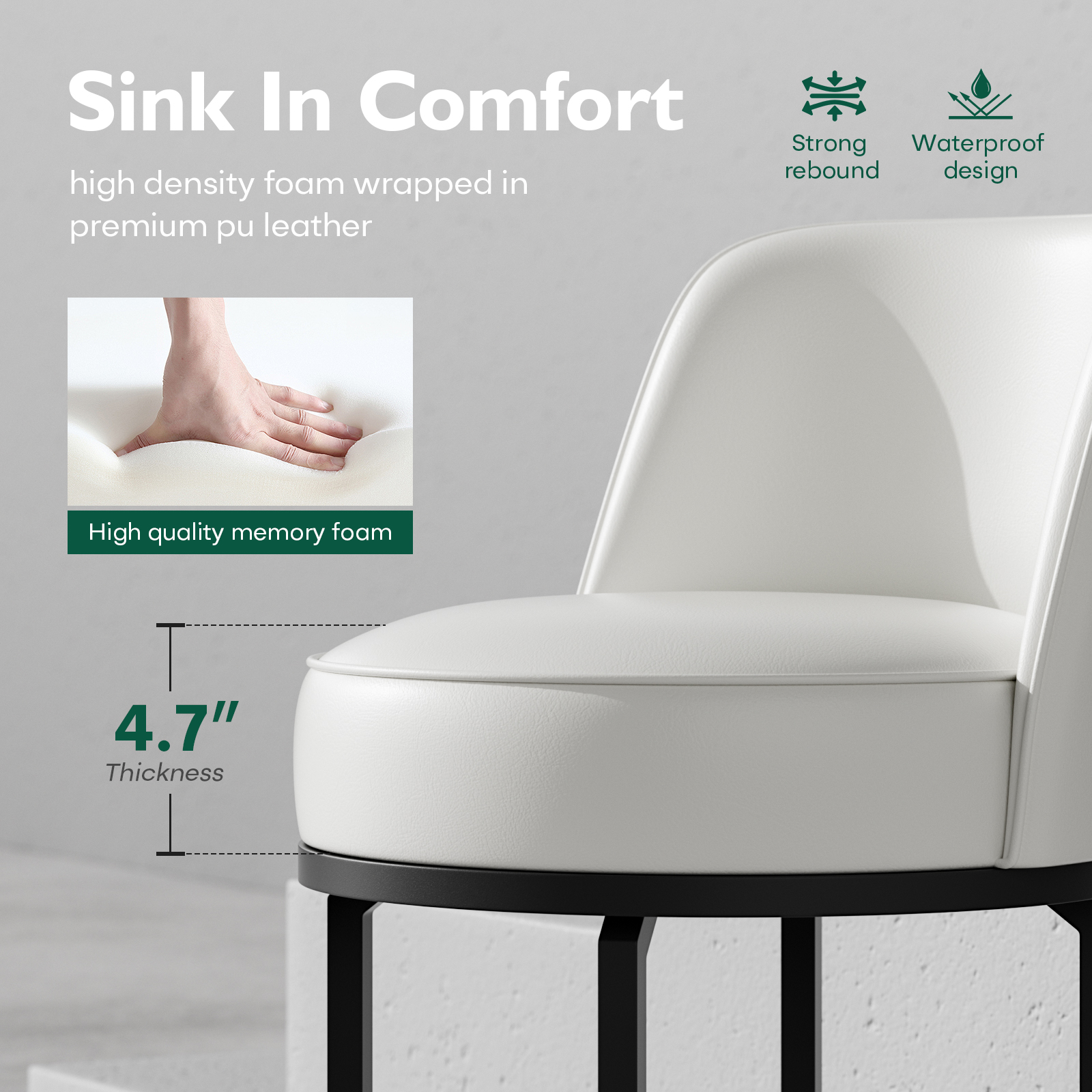 - Thick Cushioned Seat: 4.7-inch high-density foam offers strong rebound and long-lasting comfort
