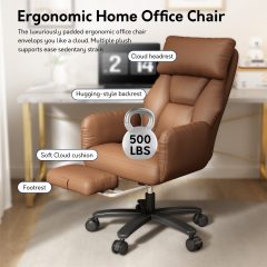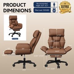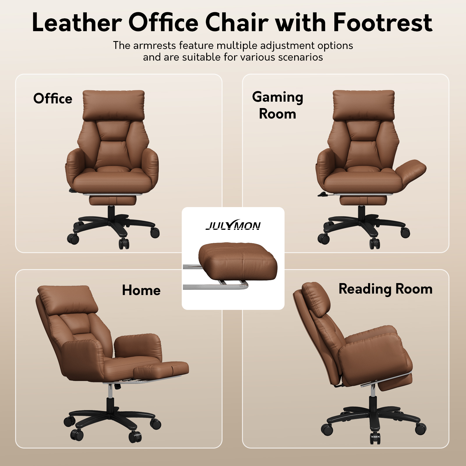 - Luxurious Recline: This executive office chair is equipped with a hugging-style backrest that reclines from 90° to 120°, a cloud-like headrest, and a retractable footrest, all wrapped in easy-to-clean, durable leather — creating a premium ergonomic experience.