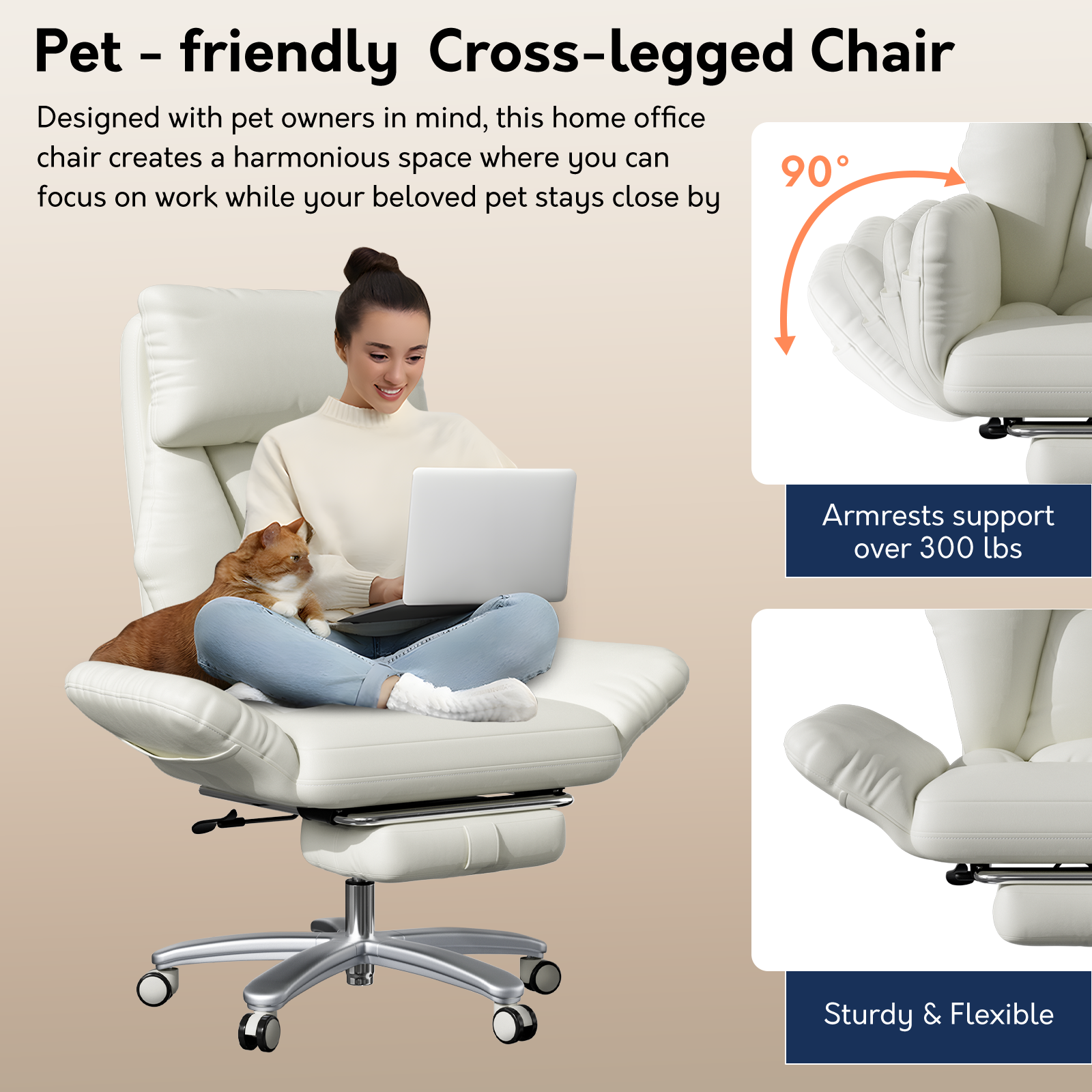 Experience superior comfort and support with this Big and Tall office chair 500 lbs, featuring a reinforced structure, SGS-certified gas lift, and 90° foldable armrests with side storage pockets for extra convenience. The ergonomic design includes a 6.5-inch thick high-density cushion, reclining backrest 90°–120°, cloud-like headrest and retractable footrest, all wrapped in easy-to-clean leather. Ideal for working, gaming, or relaxing, this high back cross-legged chair offers a spacious seat perfect for flexible sitting positions in any home or office setup.