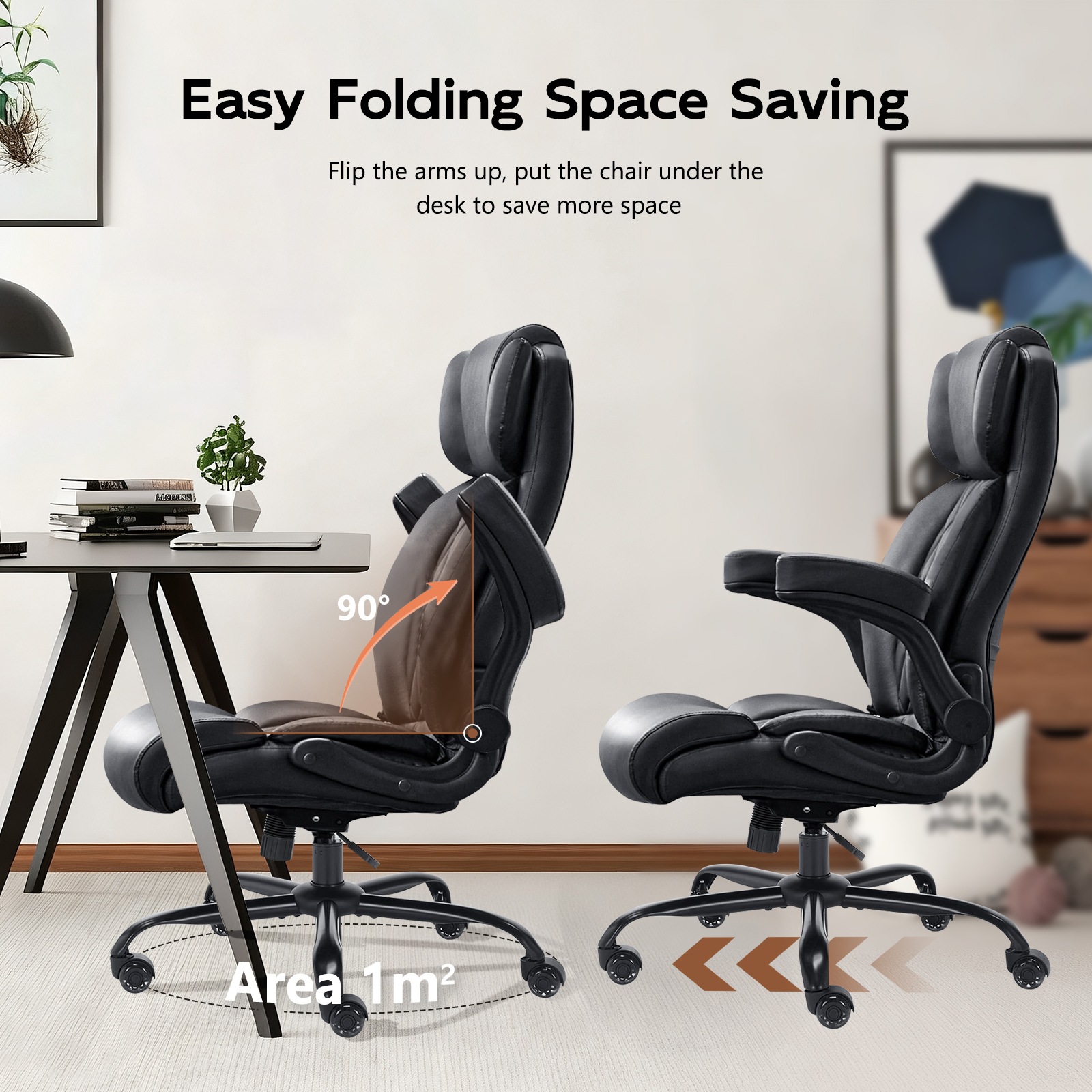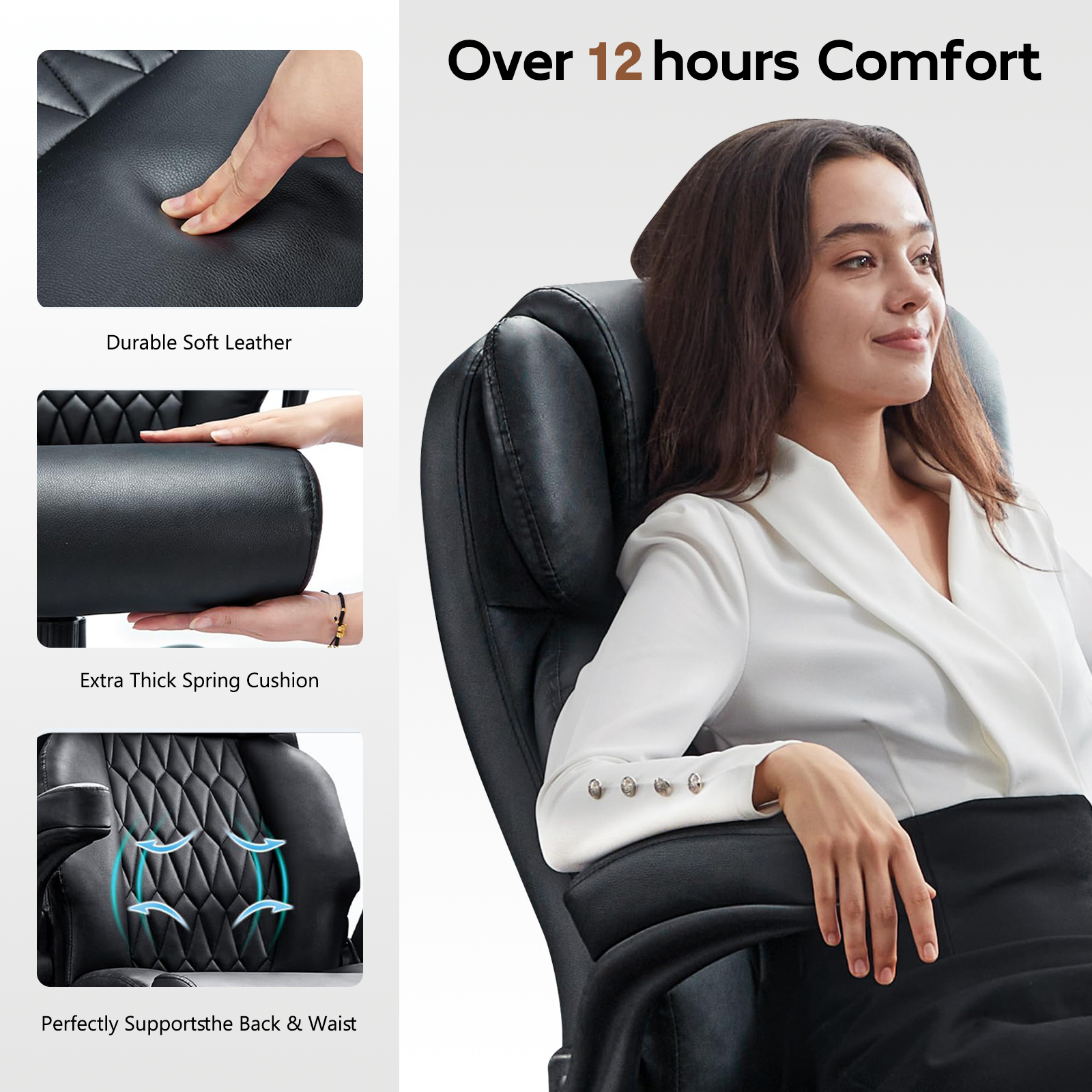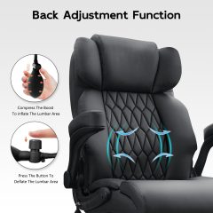 inflatable lumbar support system for back pain relief, an ergonomic high backrest, and an extra wide cushioned seat, this executive desk chair is built for long hours of work, study, or gaming. Whether you need a computer chair, task chair, or heavy duty office chair, this model delivers strength and style with its metal base, upgraded wheels, and padded flip-up armrests. Perfect for home office, business, or conference rooms.