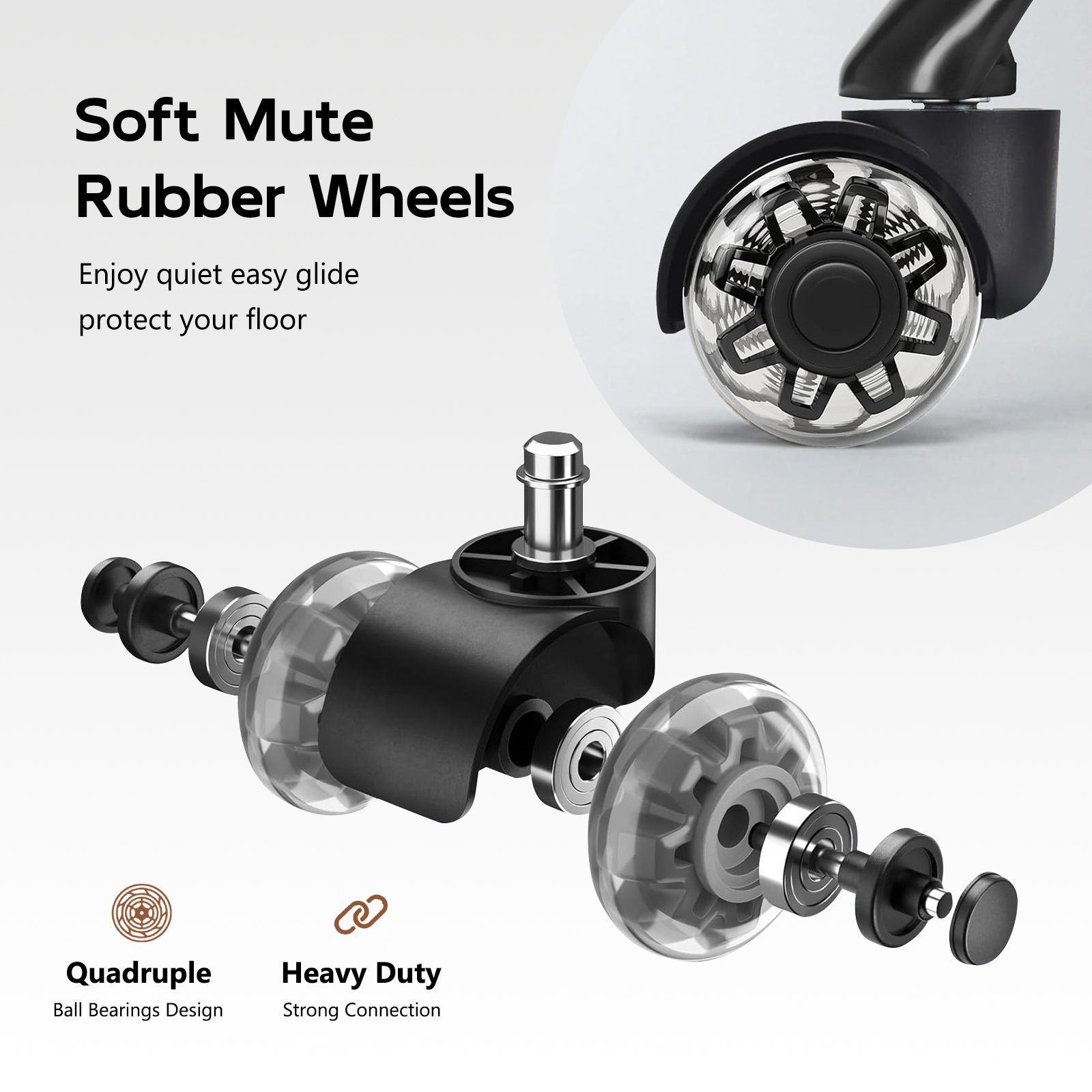 - : Heavy Duty Metal Base with Smooth PU Wheels