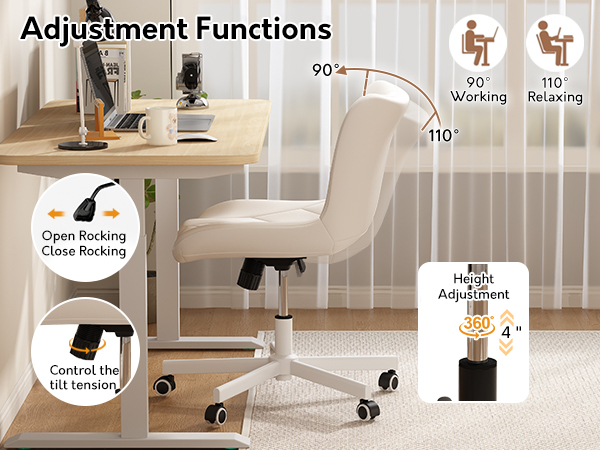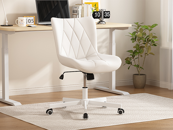 - Ninecer Adjustable Armless Office Chair, Leather Desk Chair with Wheels, Office Chair for Home Office, Computer Rolling Chair for Adults, Comfy Task Chair, White