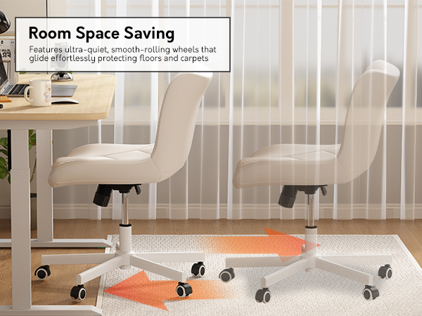 - Space-Saving Armless Design: The sleek, minimalist frame of this armless desk chair makes it a great fit for smaller desks, vanity tables, or limited spaces. Its armless build allows it to slide completely under desks or tables when not in use, keeping your workspace tidy and maximizing room layout efficiency.