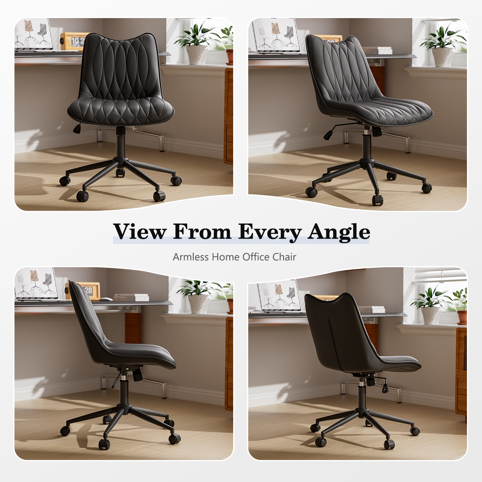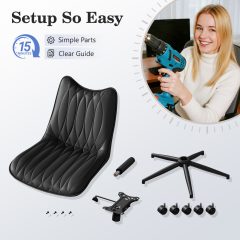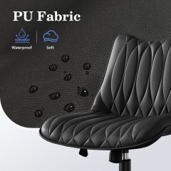 Ninecer Armless PU Leather Office Chair with Adjustable Height, Ergonomic Swivel Desk Task Chair with Tilt Function, Modern Computer Chair on Wheels for Home Office, Black