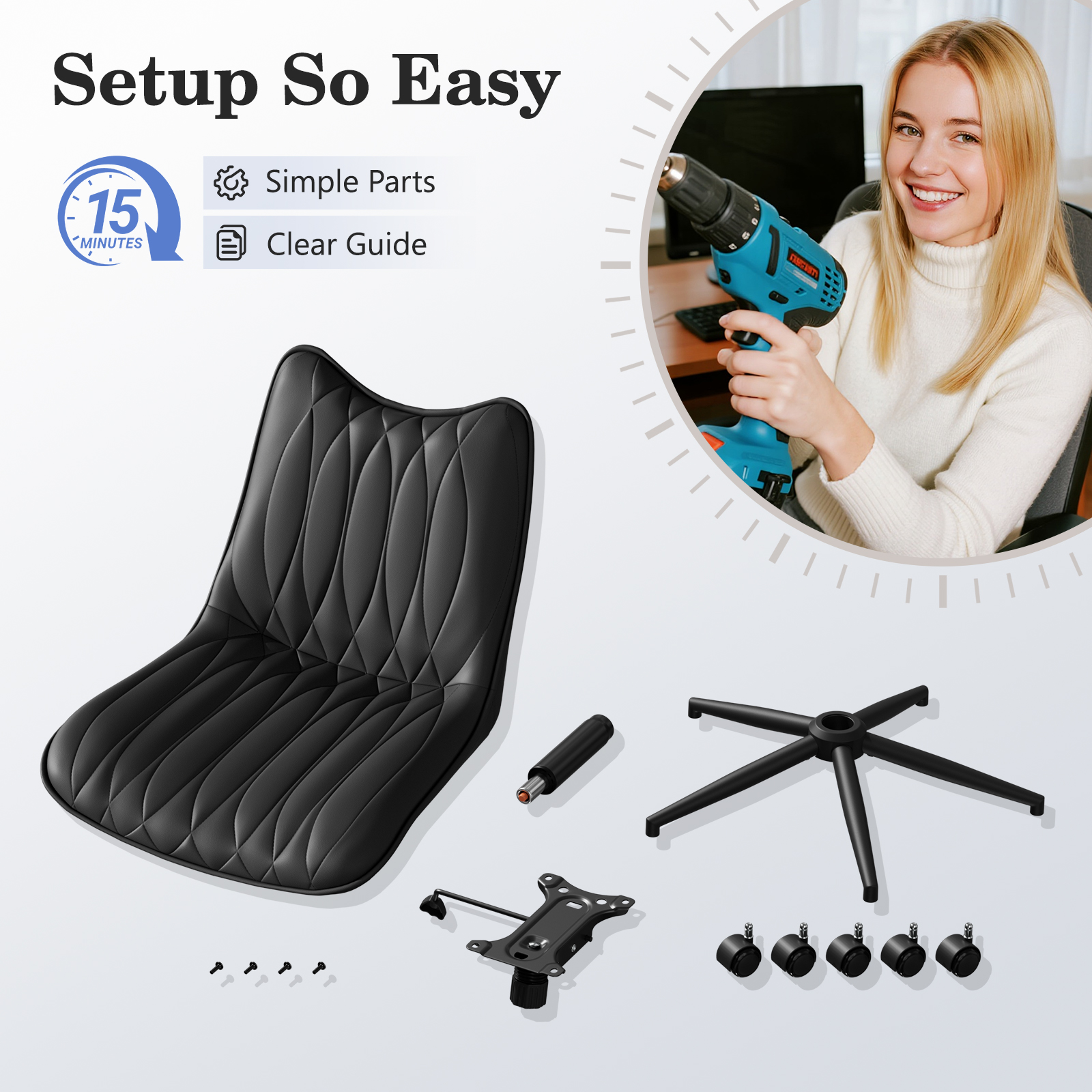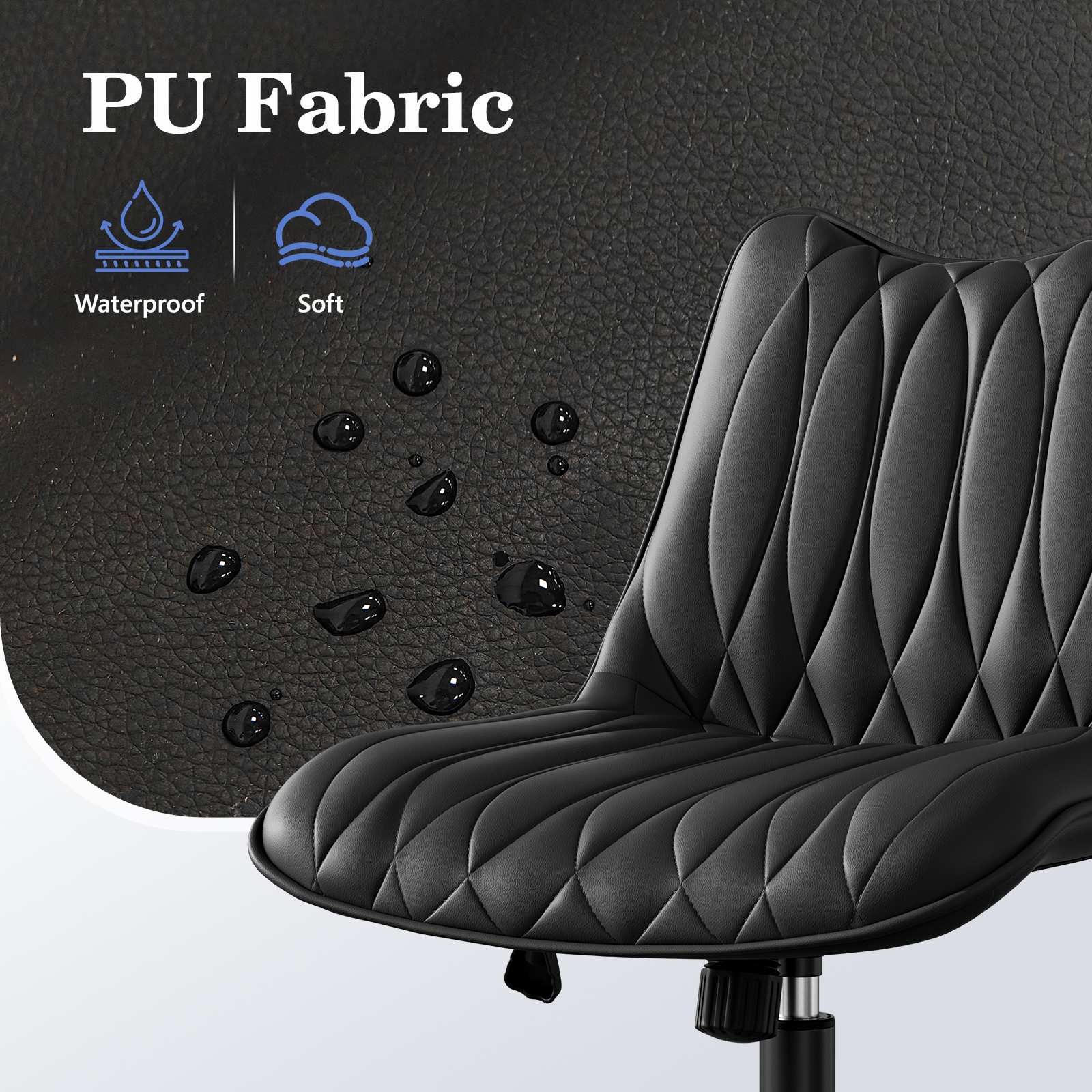 - Ergonomic Design:Contoured PU leather seat with diamond stitching for comfort and support during long working hours.