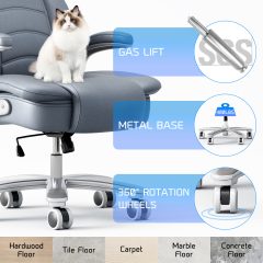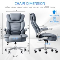 Ninecer Big and Tall Office Chair 400lb Wide Seat, Ergonomic High Back Leather Executive Desk Chair with Flip-up Arms, Computer Chair with Flip-up Arms, Gray/Blue