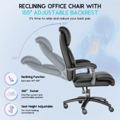 - Adjustable Reclining Office Chair: Experience personalized comfort with our Ninecer desk chair for big and tall individuals. This executive reclining office chair offers a 360° swivel, 90°-155° back adjustment, and seat height adjustment, along with thickened armrests for optimal support and relaxation.