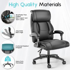- Quality Assurance: Our big and tall office chair 400lbs is crafted with high-quality PU leather, smooth rolling wheels, an SGS-certified gas cylinder, and a heavy-duty metal base. This leather high back office chair is BIFIMA certified for reliability and sturdiness.