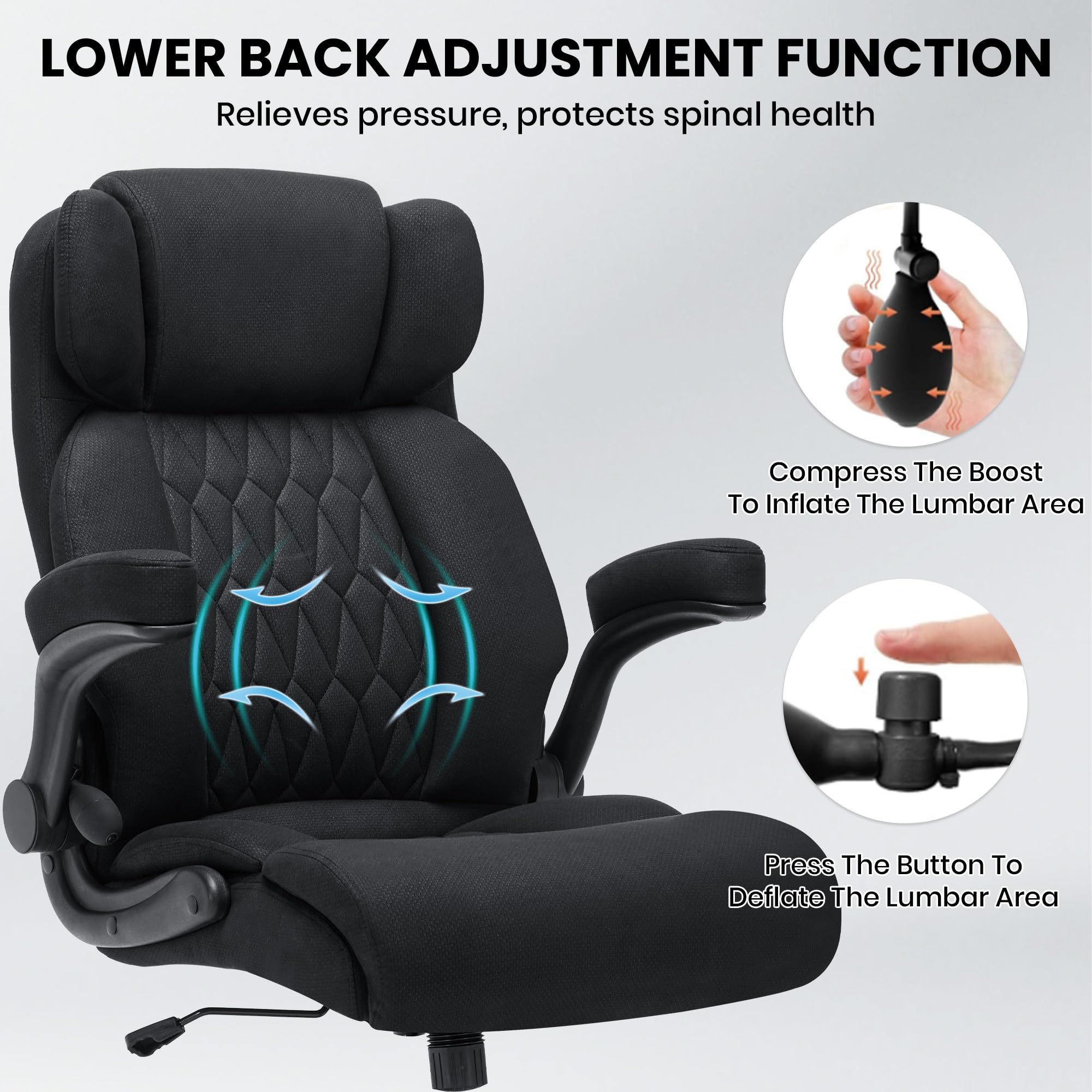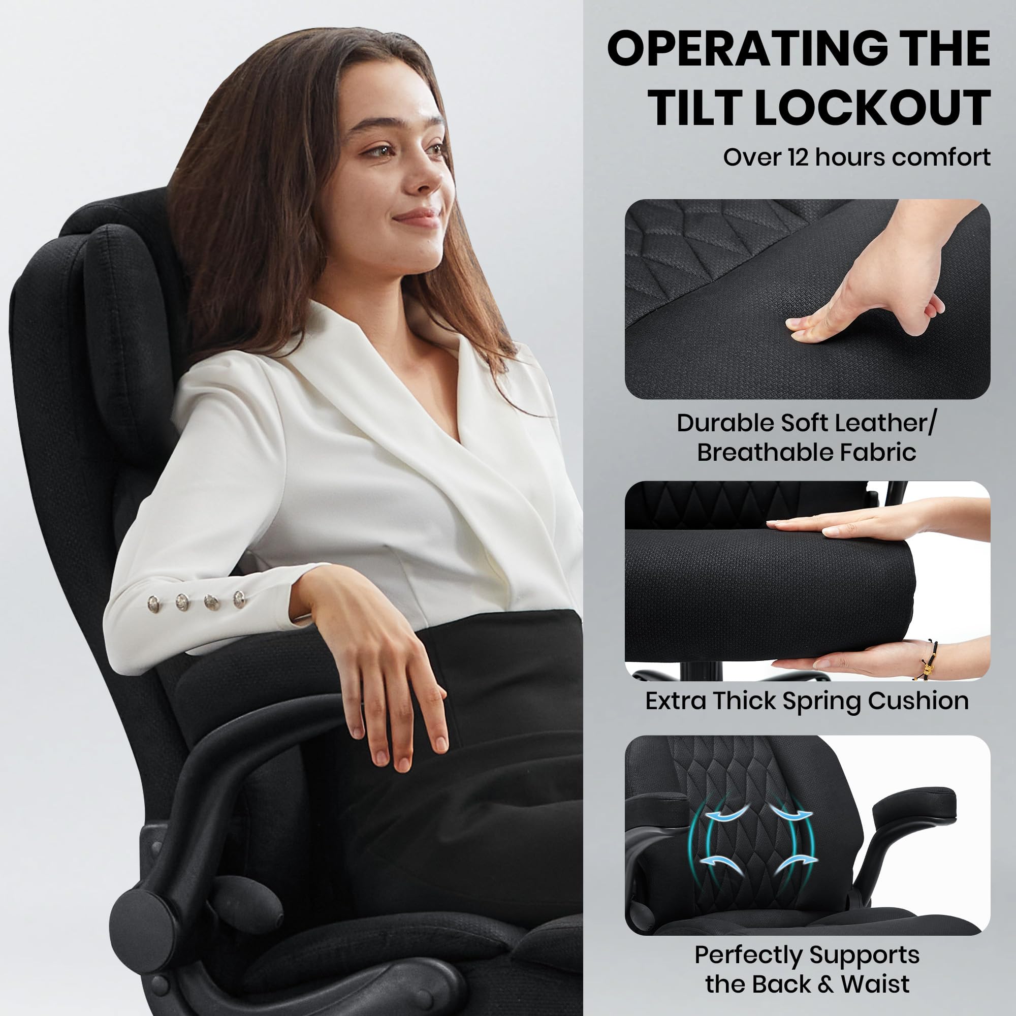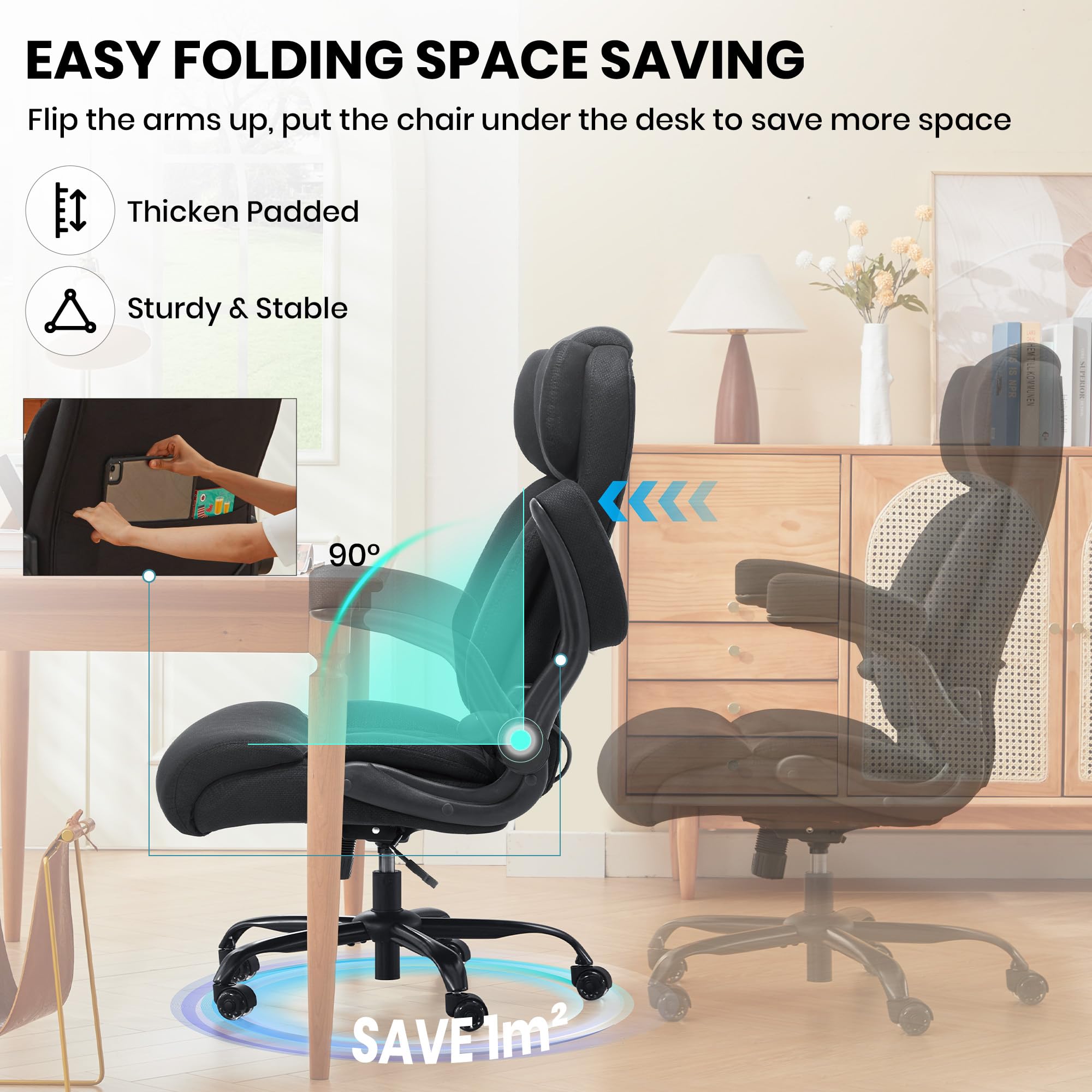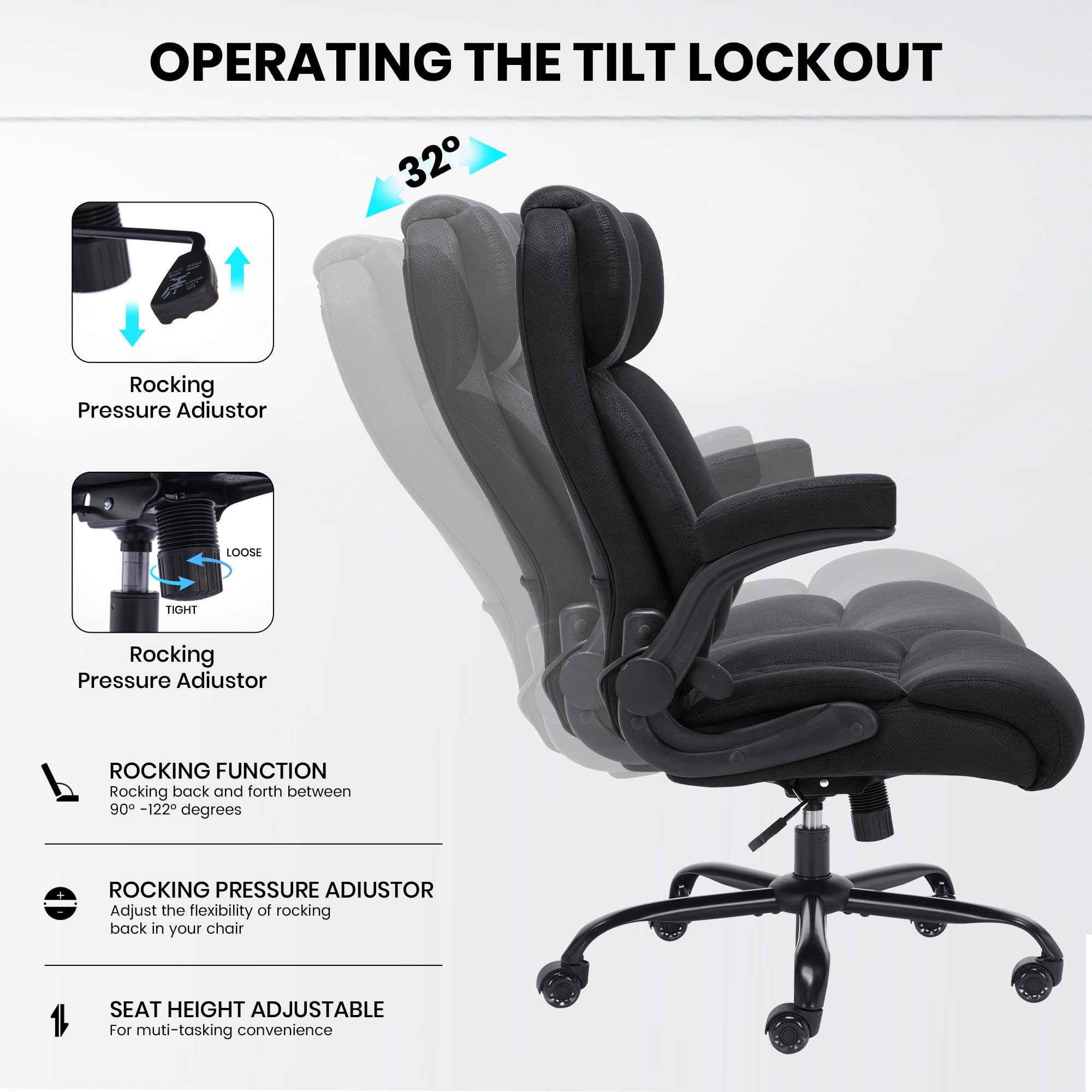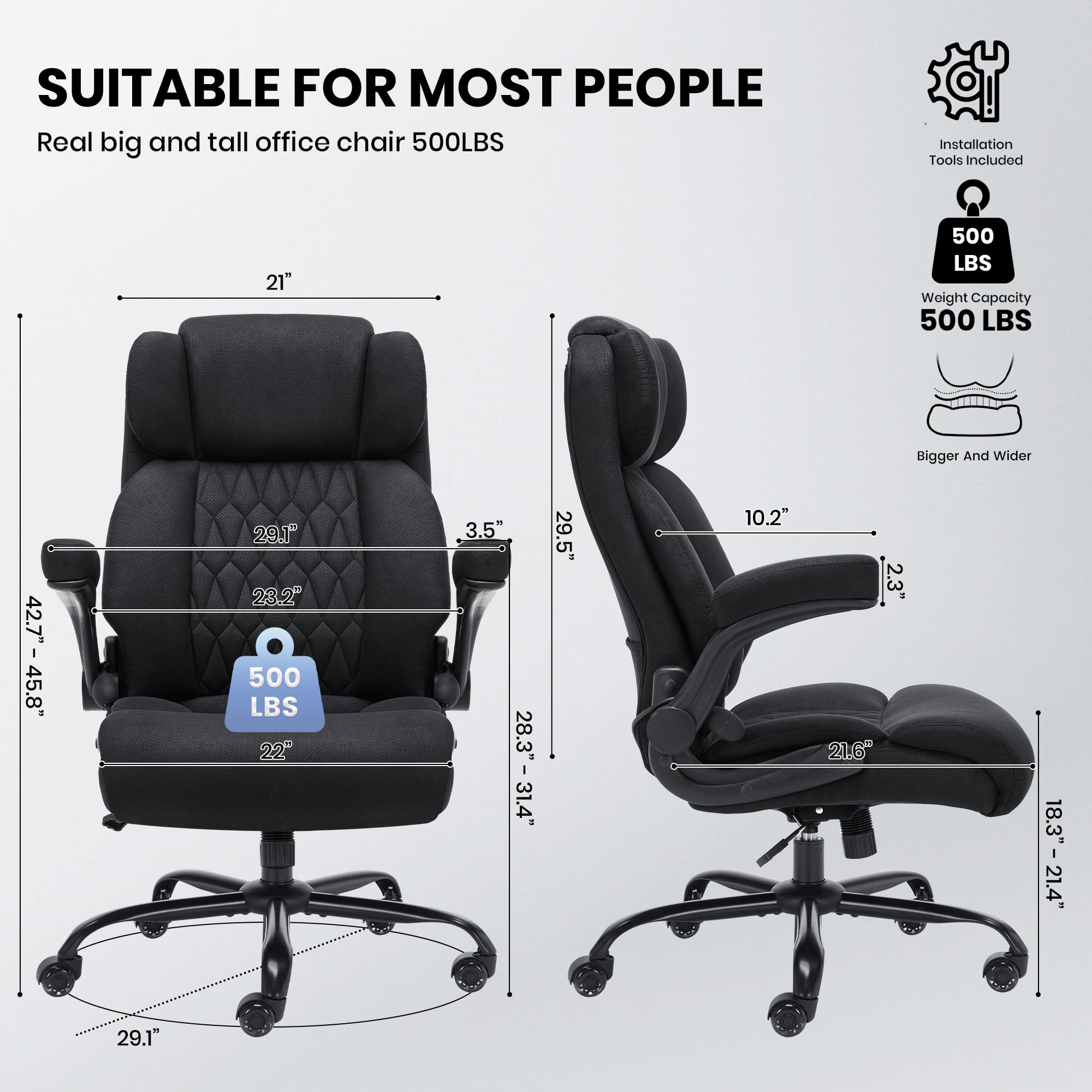 Ninecer Big and Tall Office Chair 500LBS, Heavy Duty Executive Desk Chair with High Back, Ergonomic Fabric Computer Chair with Flip-up Arms, Black