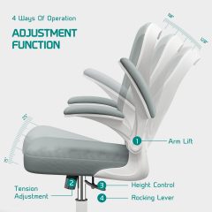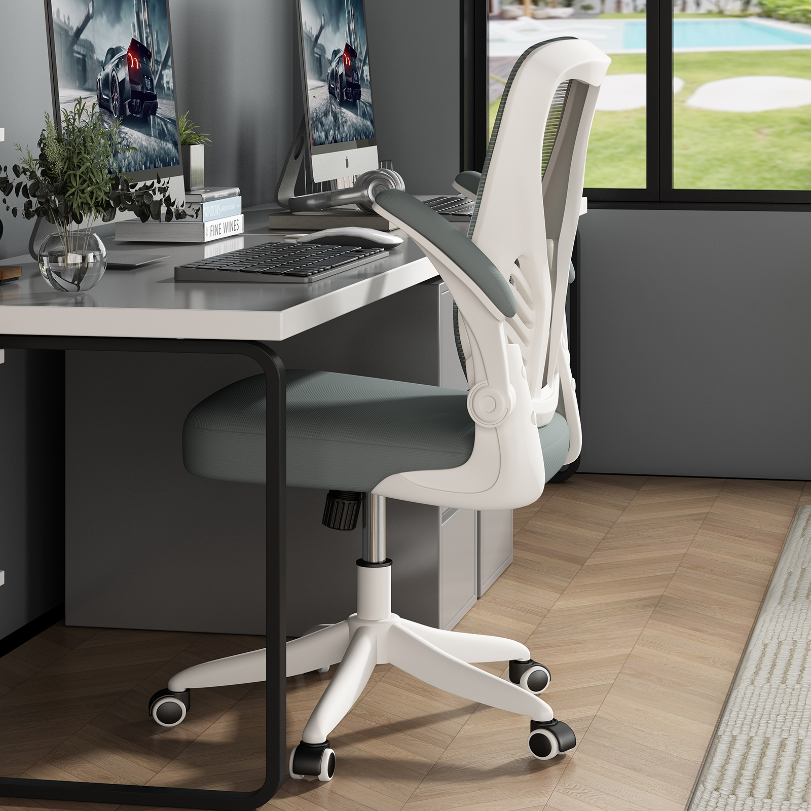 - Ninecer Breathable Mesh Office Chair, Home Office Chair with Flip-up Arms, Executive Office Chair for Adult, White and Gray