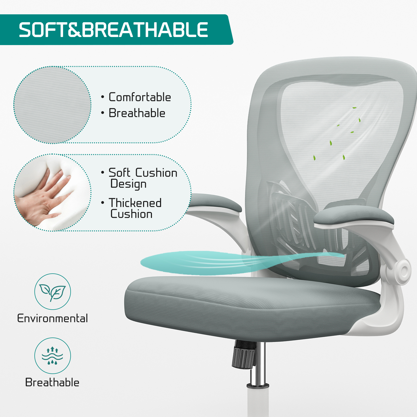 Ninecer Breathable Mesh Office Chair, Home Office Chair with Flip-up Arms, Executive Office Chair for Adult, White and Gray