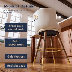 Upgrade your seating with this set of 4, 24 inch Counter Height Bar Stools, featuring a classic modern design that fits seamlessly into any kitchen island, dining room, or home bar setting. Upholstered in waterproof PU leather and filled with high-density sponge, these swivel bar chairs provide both comfort and functionality. The 360-degree swivel seat, footrest ring, and solid wood legs with golden accents combine style and practicality. Designed for everyday use, these bar stools hold up to 300 lbs and include non-slip feet to protect your floors.