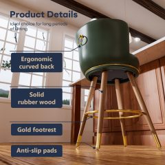 - Elegant Gold Accents & Footrest Ring: The solid rubberwood legs are complemented by golden metal caps and a matching gold footrest ring, providing both support and an upscale touch to your bar furniture.