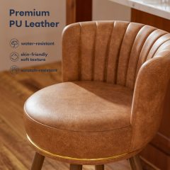 Ninecer Counter Height Bar Stools Set of 4, 26 Inch Swivel PU Leather Bar Chairs with Back and Footrest, Round Low Back Barstools for Kitchen Island Dining Room, Brown
