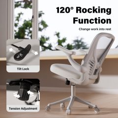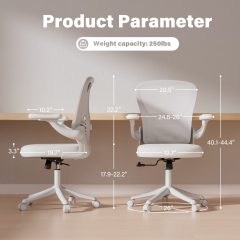 Upgrade your workspace with this ergonomic mesh office chair featuring breathable mesh backrest, 3D adjustable armrests, and a supportive design for long-lasting comfort. The modern mid-back swivel chair comes with a height-adjustable seat, lumbar support, and smooth-rolling casters, perfect for home offices, study areas, or gaming setups. With a weight capacity of 250 lbs, this rolling desk chair is available in four stylish colors: pink, white, grey, and black. The 3D armrests allow up to 30° rotation and 2.6″ sliding adjustment, offering optimal arm and elbow support. The seat height adjusts from 17.9″ to 22.2″, and the overall height ranges from 40.1″ to 44.4″. Simple assembly required.