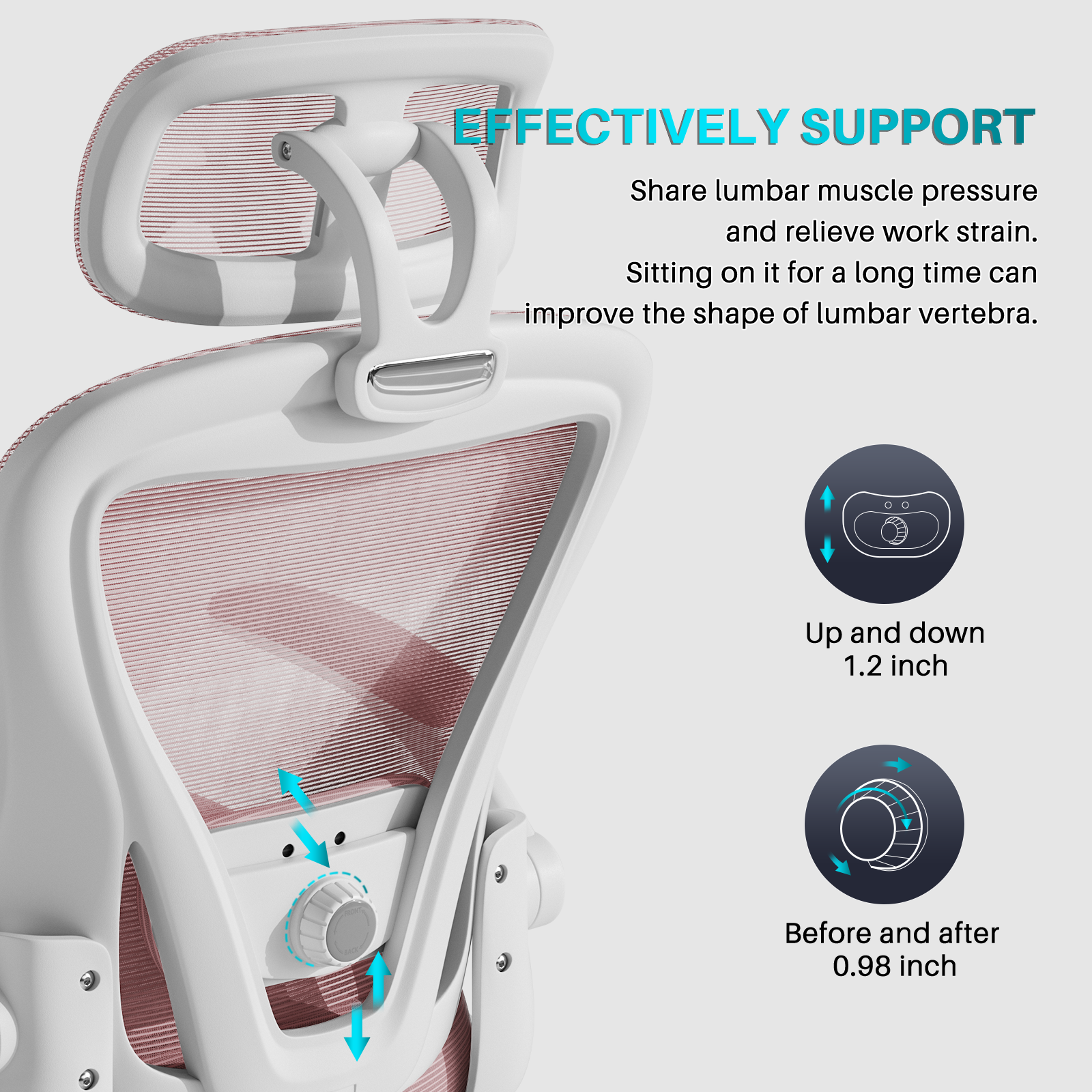 - Lumbar Support: The Computer desk chair with lumbar support Adjustable(up and down)1.2 inches. Provides excellent support for the waist.