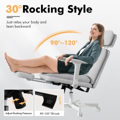 - Reclining Function & Footrest:Features a 90°–120° tilt with lock and a retractable padded footrest, allowing you to stretch and relax after long hours at your desk.