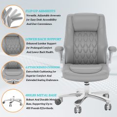 Ninecer High Back Executive Office Chair, Big and Tall Office Desk Chair 400LBS with Lumbar Support, Flip-up Armrests, Rubber Wheels, Grey