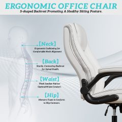 Ninecer High Back Executive Office Chair, Big and Tall Office Desk Chair 400LBS with Lumbar Support, Flip-up Armrests, Rubber Wheels, White
