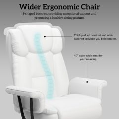 Ninecer High Back Executive Office Chair, Ergonomic PU Leather Office Chair, Heavy Duty Computer Desk Chair, Reclining Office Chair with Footrest 400lbs, White