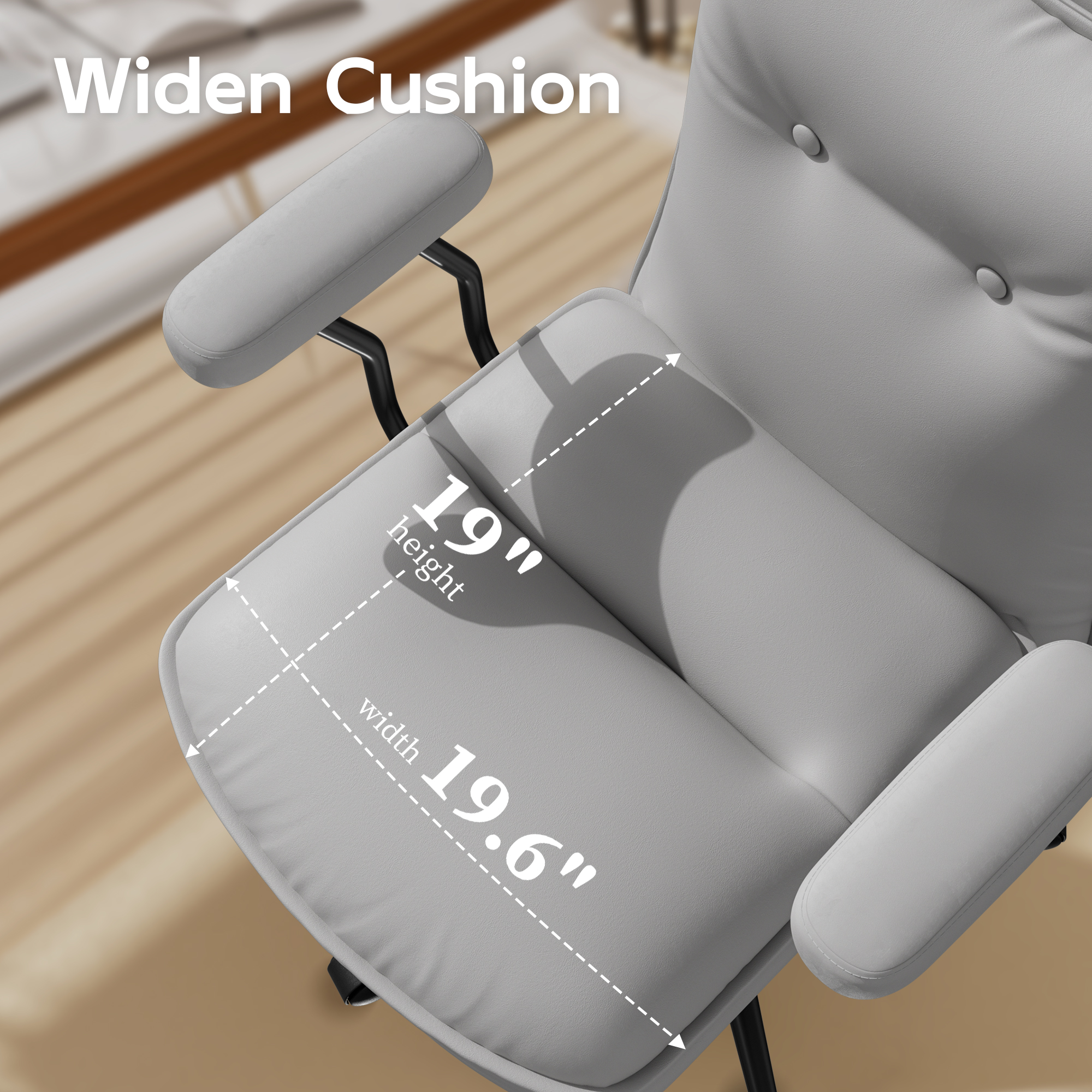 Ninecer Mid Back Leather Desk Chair with Wheels, Adjustable Swivel Computer Chair, Padded Wide Seat Office Chair 300lbs, Task Chair for Home Office or Study Room, Grey
