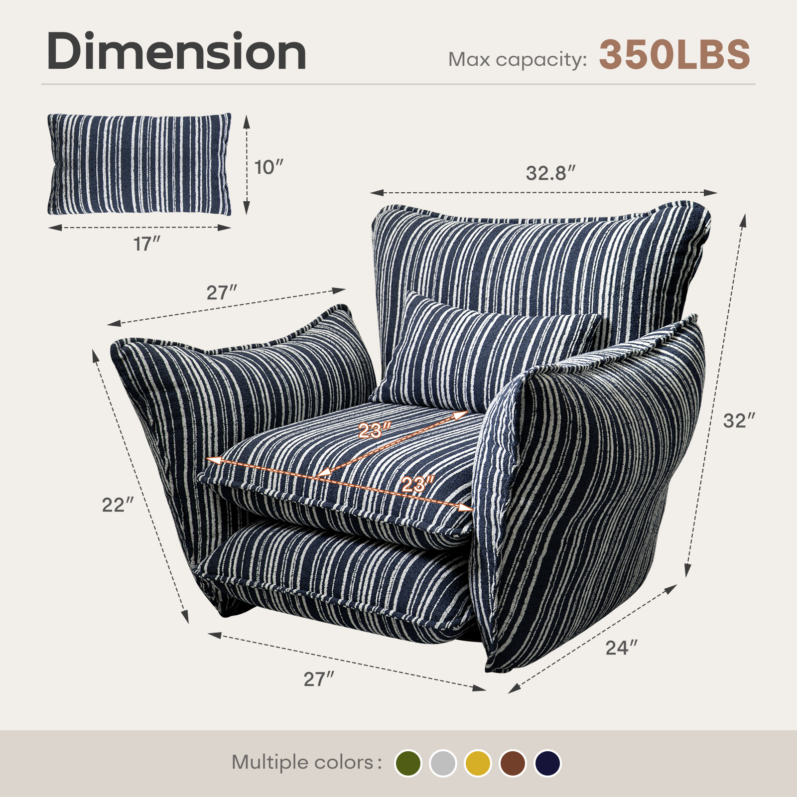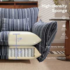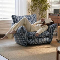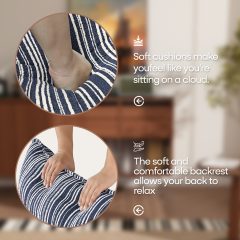 Ninecer Modern Accent Chair for Living Room, Single Sofa Chair Double Cushions, Comfy Upholstered Lounge Chair with Striped Fabric & Lumbar Pillow, 350 lbs Capacity, Blue Stripe