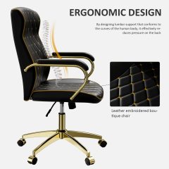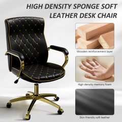 - Ninecer Modern PU Leather Office Chair with Gold Metal Frame, Ergonomic High Back Desk Chair with Padded Armrests, Computer Desk Chair with Swivel and Rocking Function, Adjustable Height, Black
