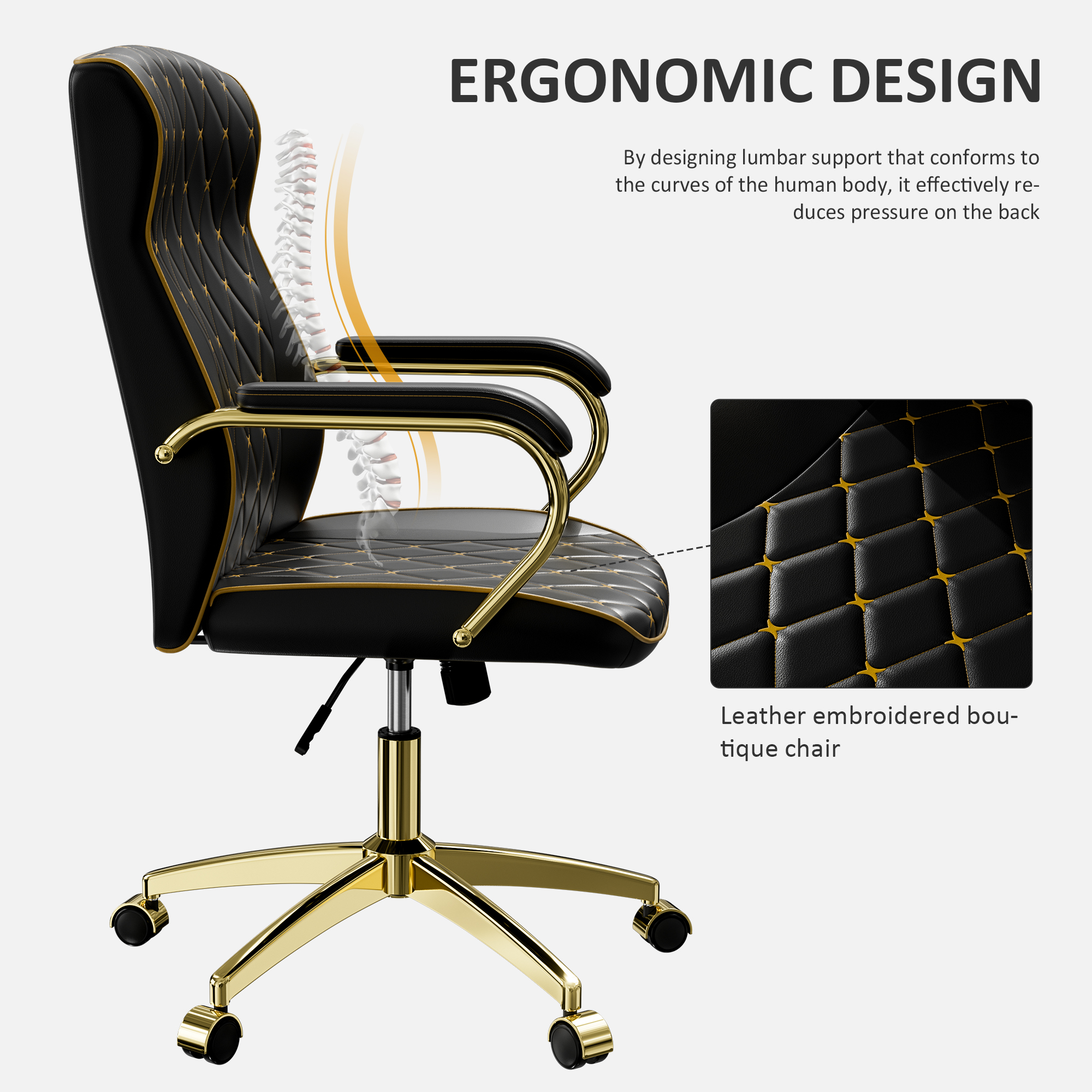 Ninecer Modern PU Leather Office Chair with Gold Metal Frame, Ergonomic High Back Desk Chair with Padded Armrests, Computer Desk Chair with Swivel and Rocking Function, Adjustable Height, Black