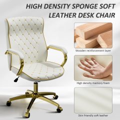 Ninecer Modern PU Leather Office Chair with Gold Metal Frame, Ergonomic High Back Desk Chair with Padded Armrests, Computer Desk Chair with Swivel and Rocking Function, Adjustable Height, White