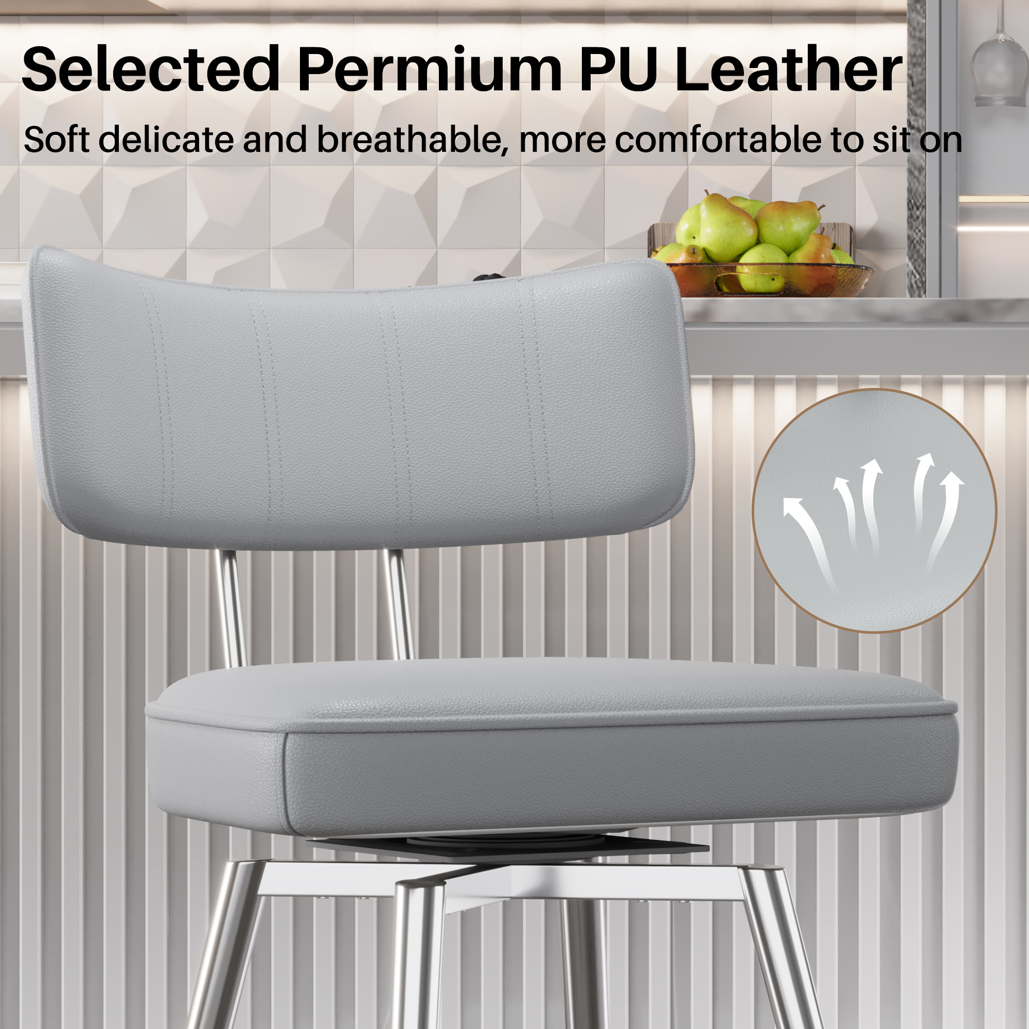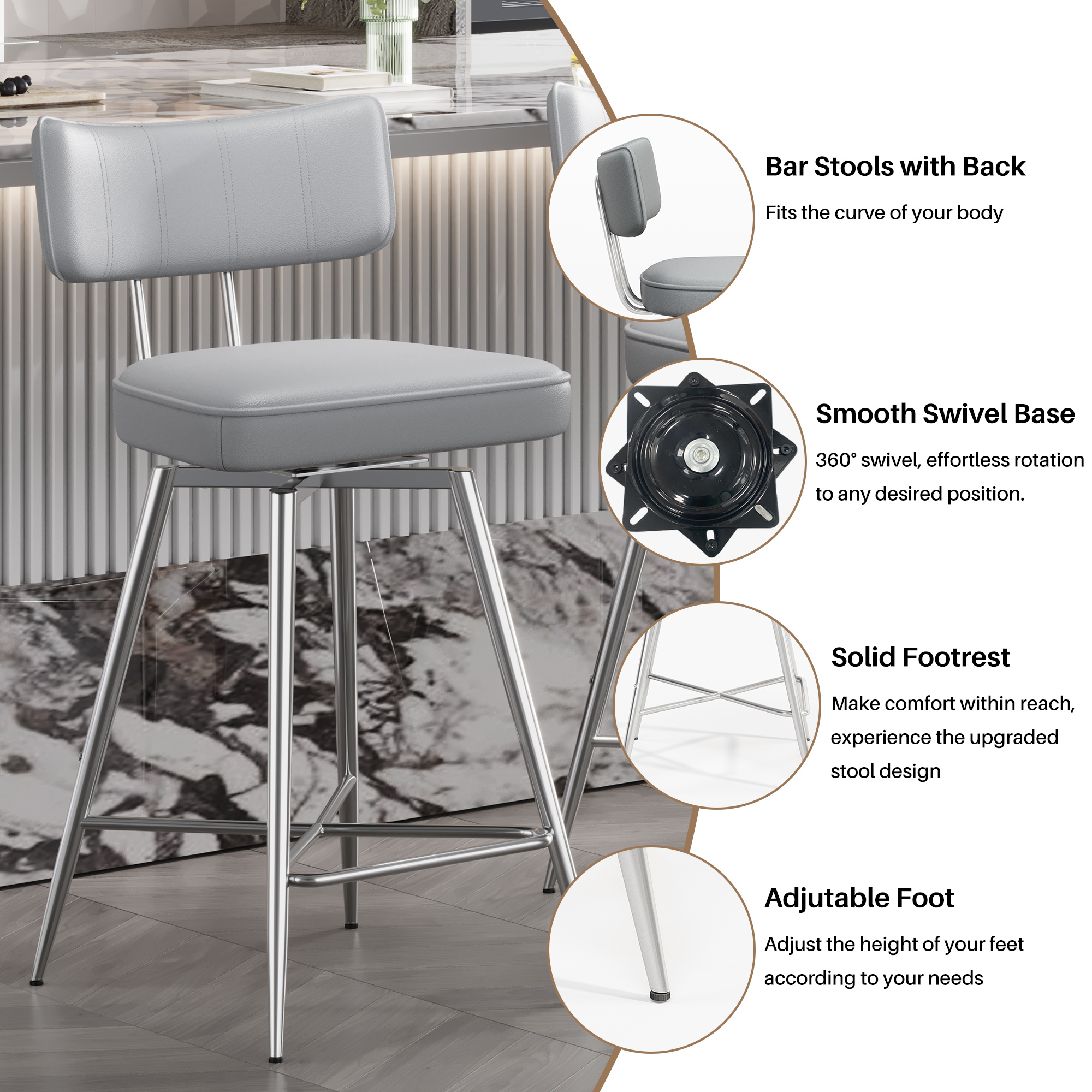 Ninecer Swivel Bar Stools Set of 4, 26″ Counter Height Bar Stools with Back, Leather Upholstered Kitchen Barstool with Footrest and Metal Frame, Bar Chair for Kitchen Island, Grey