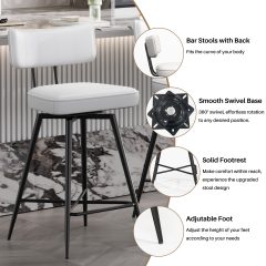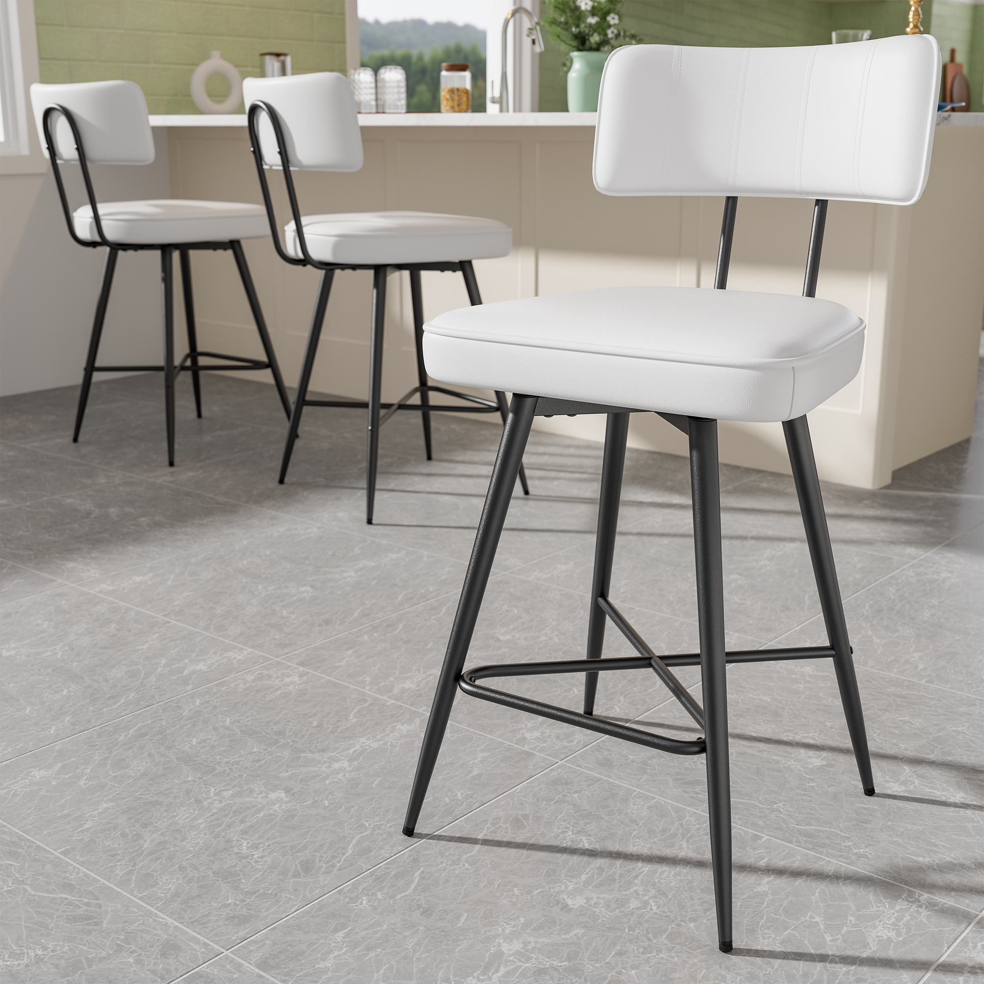 - Ninecer Swivel Bar Stools Set of 3, 26″ Counter Height Bar Stools with Back, Leather Upholstered Kitchen Barstool with Footrest and Metal Frame, Bar Chair for Kitchen Island, white