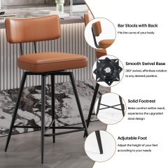 - Comfortable Swivel Bar Stools: The seat and backrest of the counter height stools are made of high-quality leather, which is flexible, fade-resistant and filled with high-density foam for a softer and more comfortable seating experience. Furthermore, the bar stool features a 360° swivel function for easy rotation, facilitating relaxed conversations with family and friends. You can also lean back against the backrest and rest your legs on the footrest for better posture.