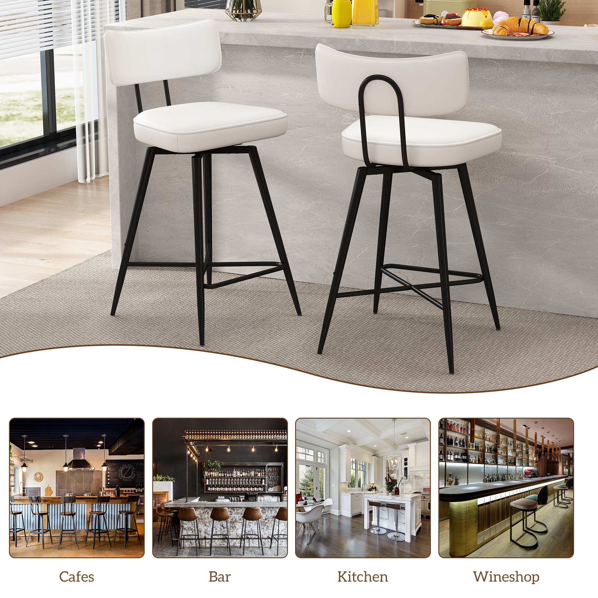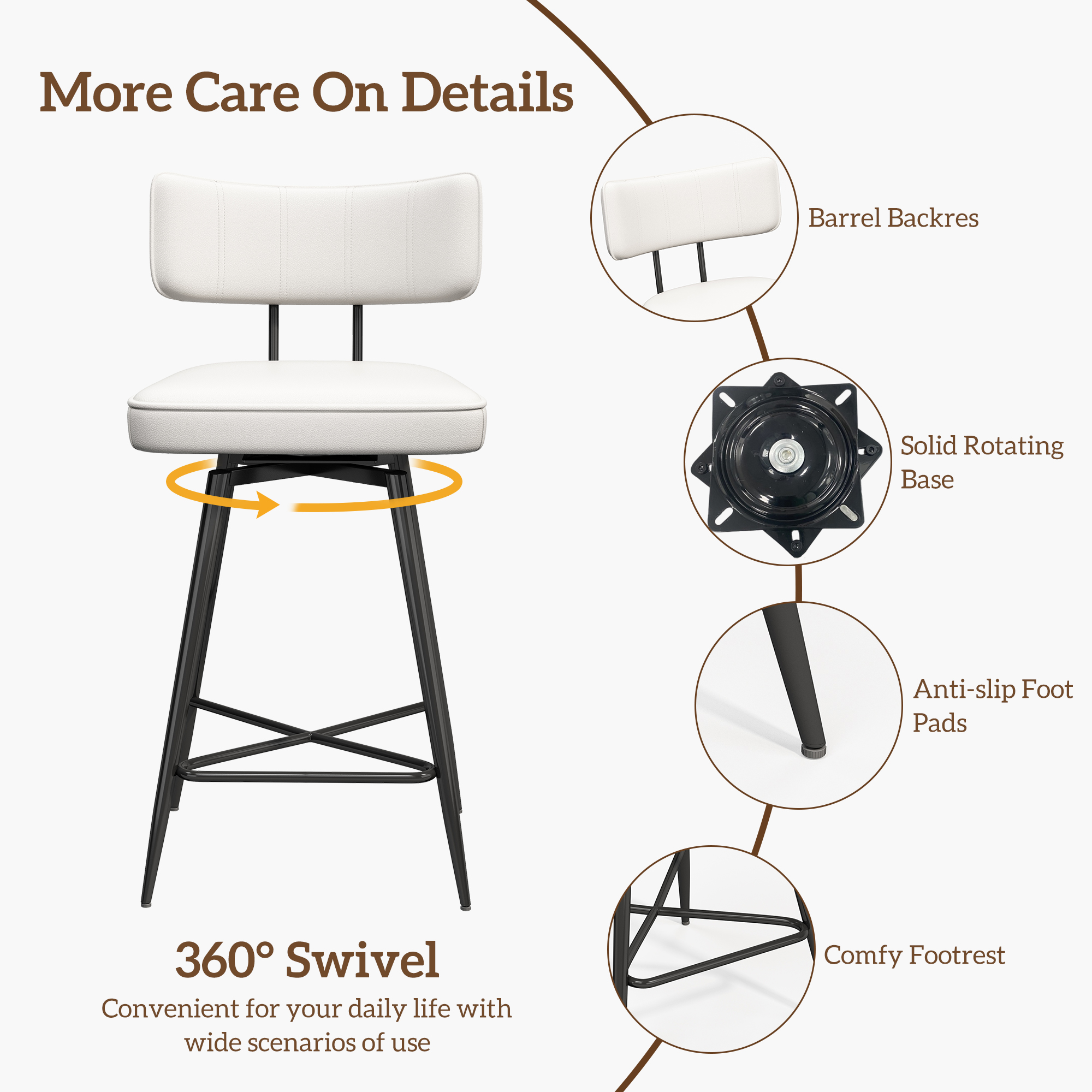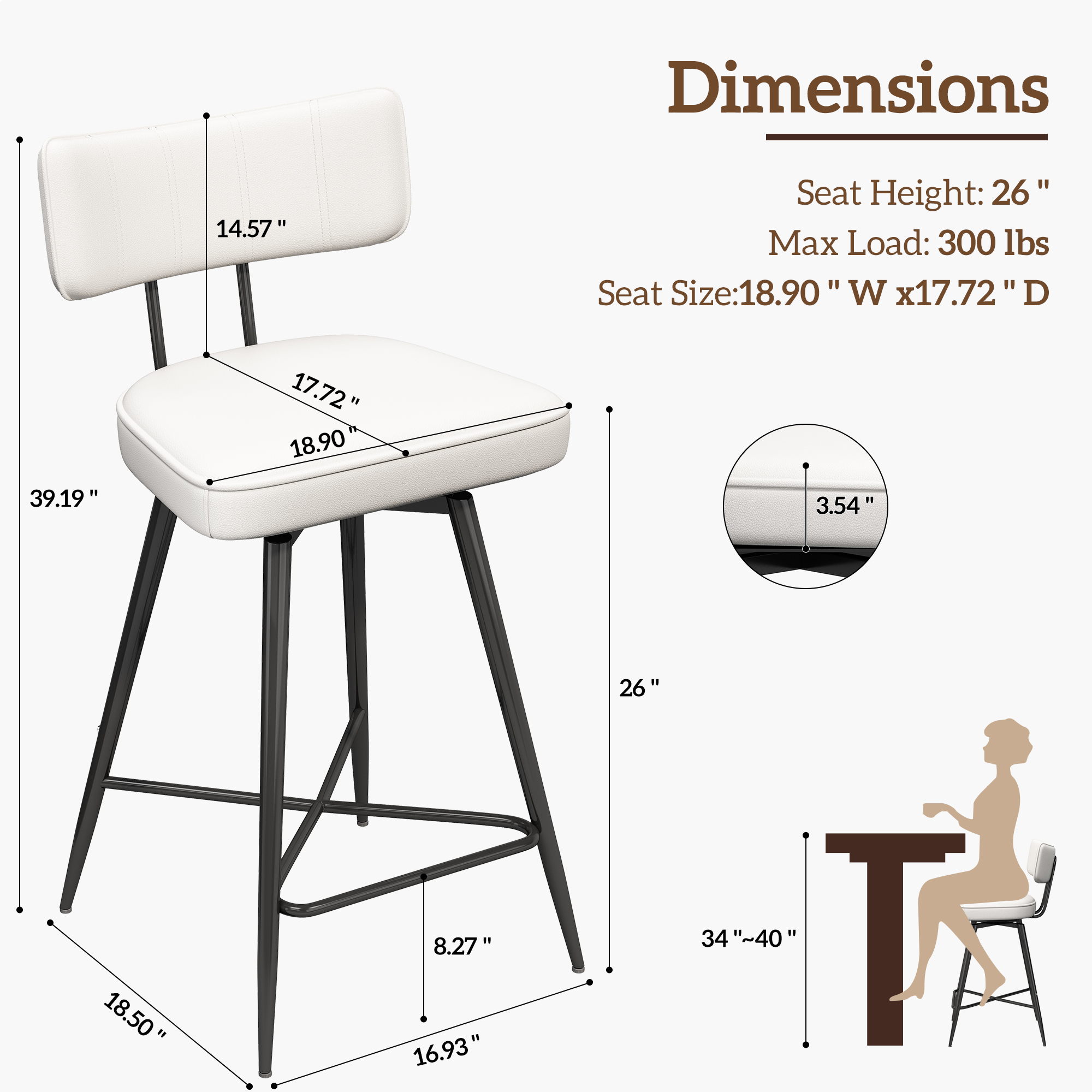 - Ninecer Swivel Bar Stools Set of 4, 26″ Counter Height Bar Stools with Back, Leather Upholstered Kitchen Barstool with Footrest and Metal Frame, Bar Chair for Kitchen Island, White