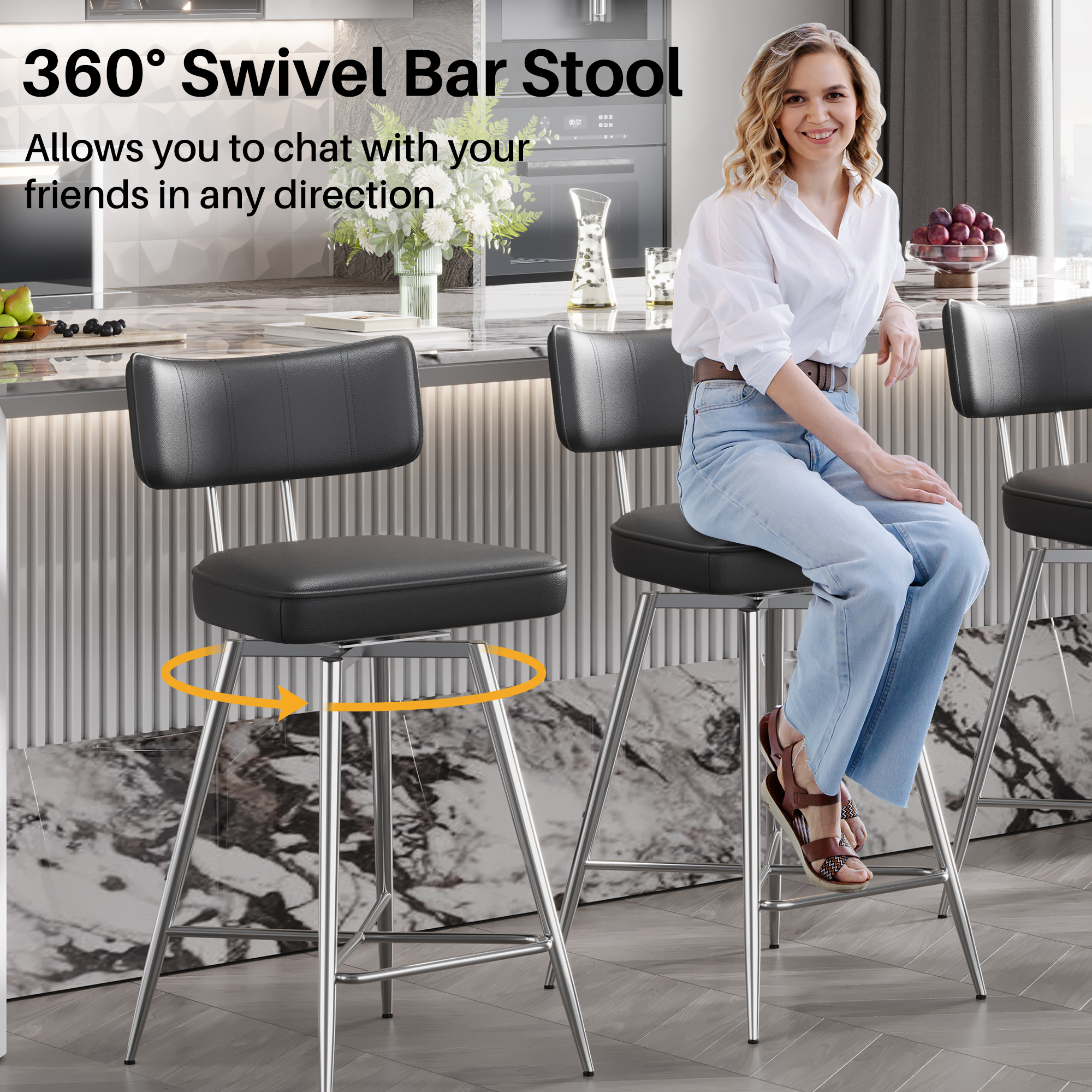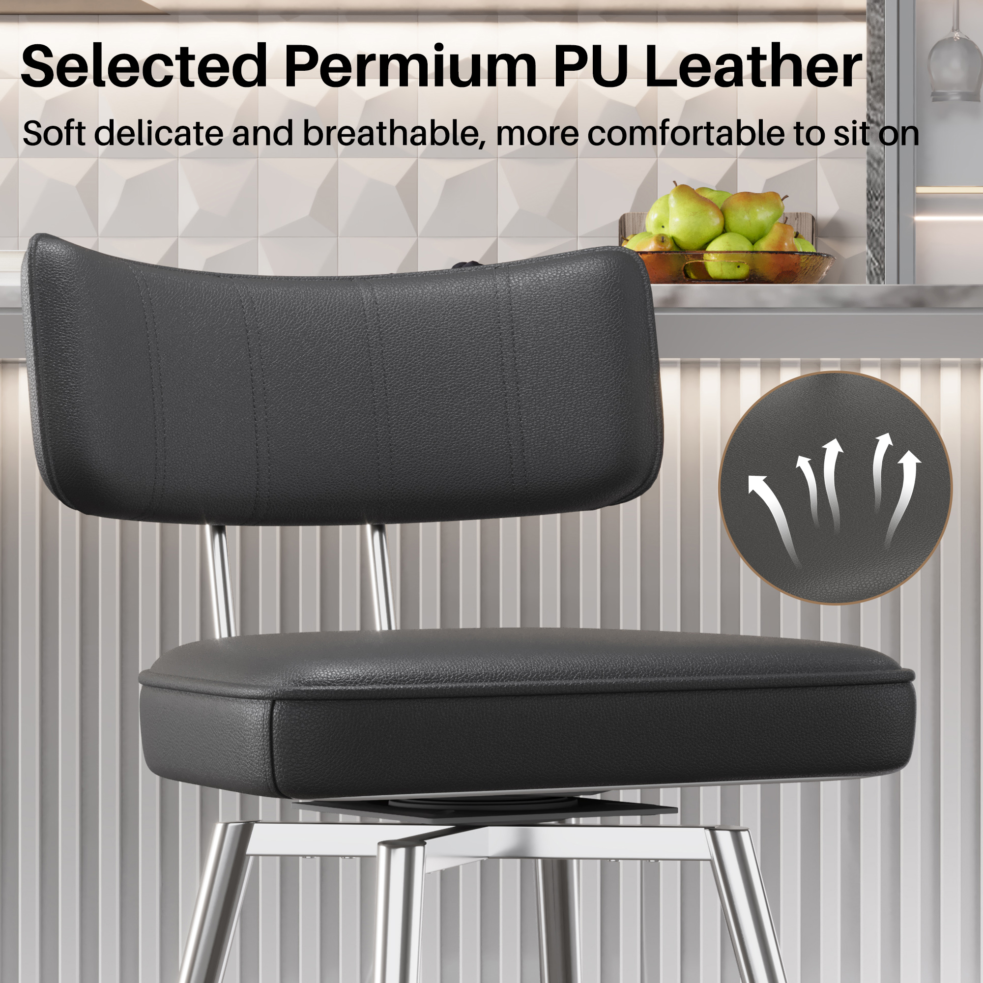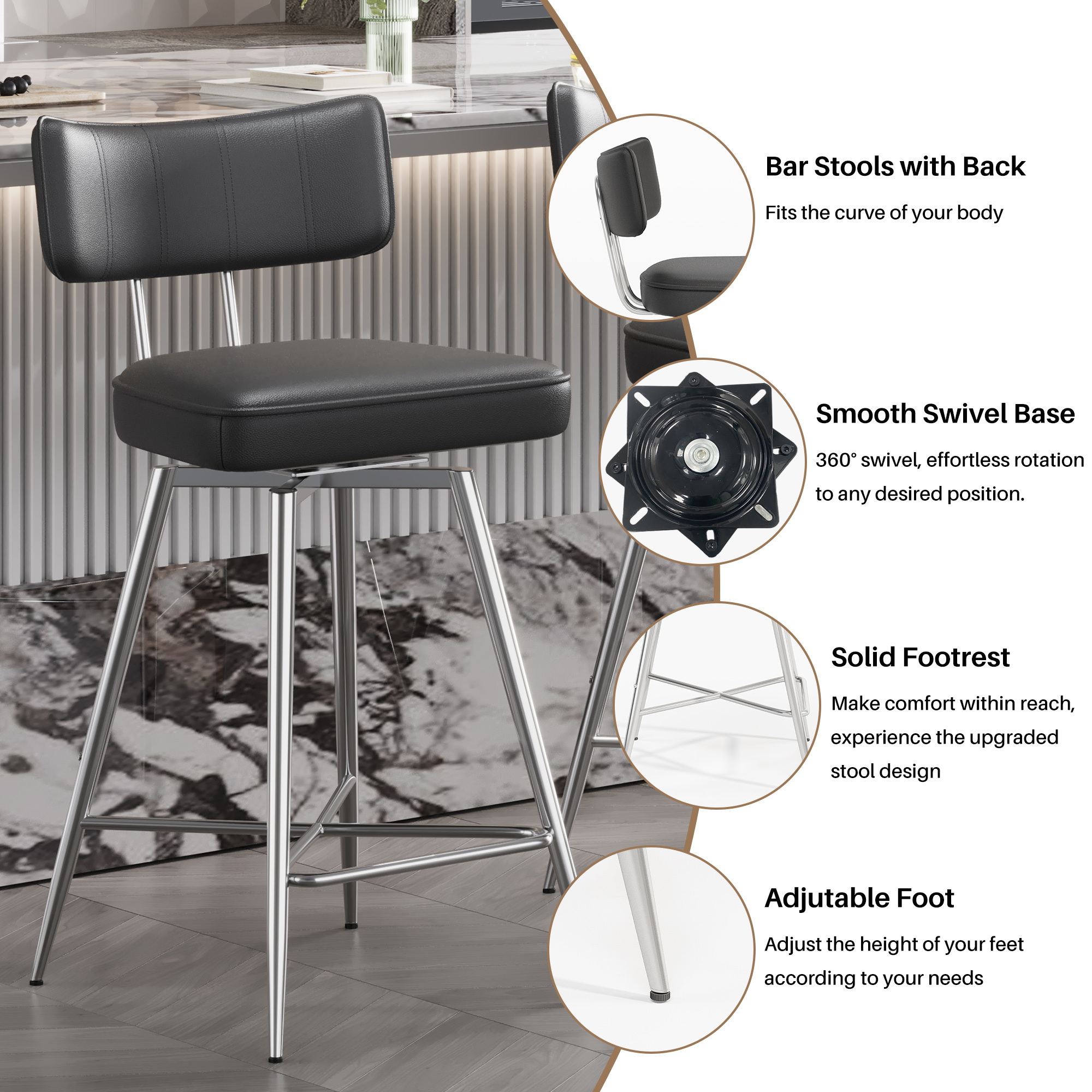 - Ninecer Swivel Bar Stools Set of 2, 26″ Counter Height Bar Stools with Back, Leather Upholstered Kitchen Barstool with Footrest and Metal Frame, Bar Chair for Kitchen Island, Black