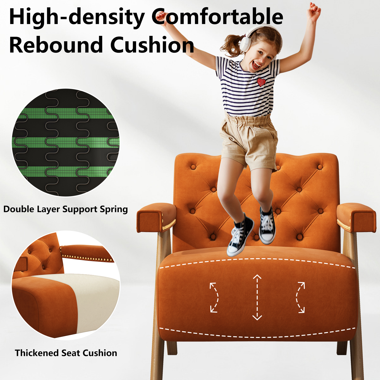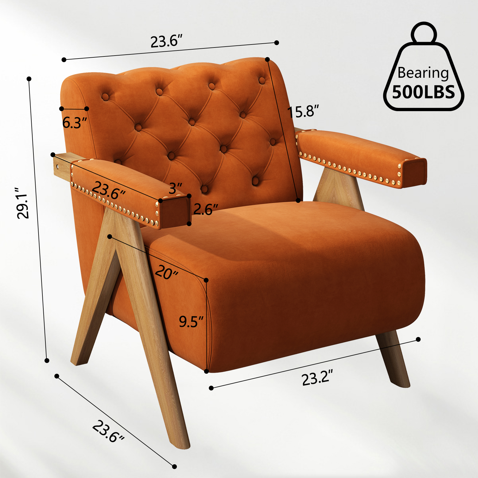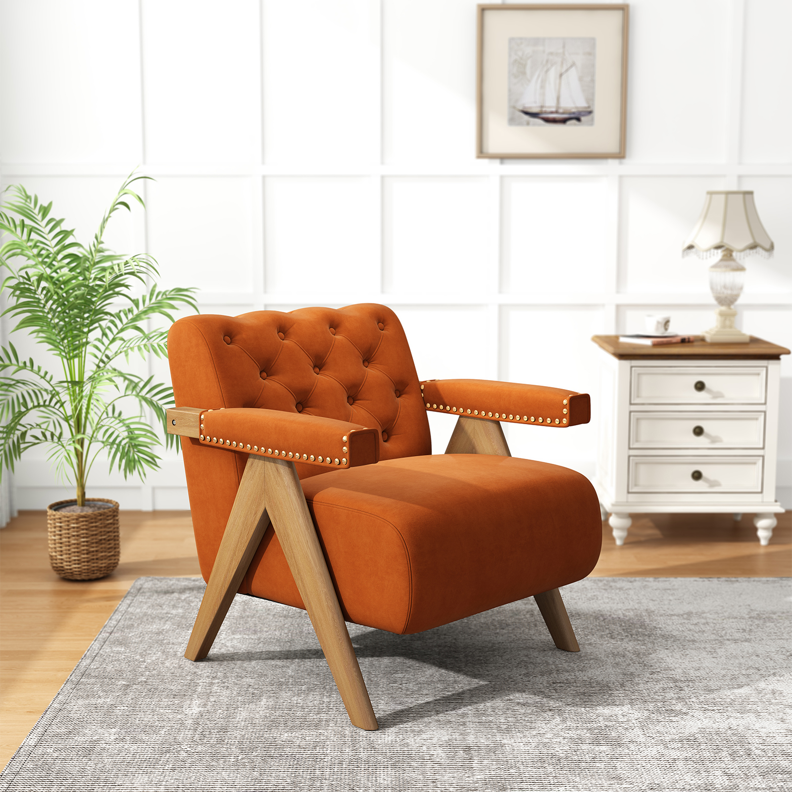 Ninecer Velvet Accent Chair, Single Sofa Chair with Thickened Cushion for Living Room Bedroom, Orange